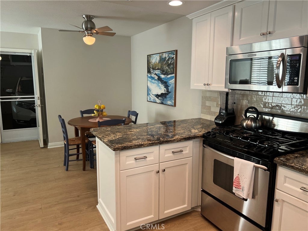 CULDESAC END UNIT LOCATION! This townhouse-style condominium is located within a gated community and offers the privacy and feel of a single-family home, with no one above or below, in one of the most desirable interior locations. DOUBLE SIZED MASTER BEDROOM WITH FIREPLACE. Thoughtfully upgraded and meticulously maintained, the residence features the LARGEST floor plan in the community and is presented in true move in condition. See property highlights below for a complete list of features and upgrades. Property Highlights • Townhouse-style condominium with no one above or below • Three bedrooms plus den (double size primary) • Two and one-half bathrooms • END OF CULDESAC END UNIT LOCATION with side & rear greenbelt-no through traffic • One of the best locations within the community • LARGEST floor plan in the community – approx. 1,981 sq. ft. • Meticulously maintained; move-in ready • New high-end laminate flooring throughout • Remodeled kitchen with new cabinetry, pull-out drawers & pantry • Newer high end counter-depth refrigerator, LG washer & dryer (may be included with an acceptable offer) Bosch Dishwasher • Two gas fireplaces: living room & primary suite • All Milgard dual-pane replacement windows with custom wooden shutters • Updated HVAC system (air conditioning & furnace) new Lennox thermostat • Updated attic ducts All interior windows have custom wood shutters • Custom garage cabinetry • Exceptional storage throughout including under-stair storage • Baldwin door hardware throughout including front door lock • Remote-controlled lighting at staircase & den step-down • Custom reverse-osmosis drinking water system in garage with faucet • Ceiling fans in all bedrooms and dinette area • Quiet interior location