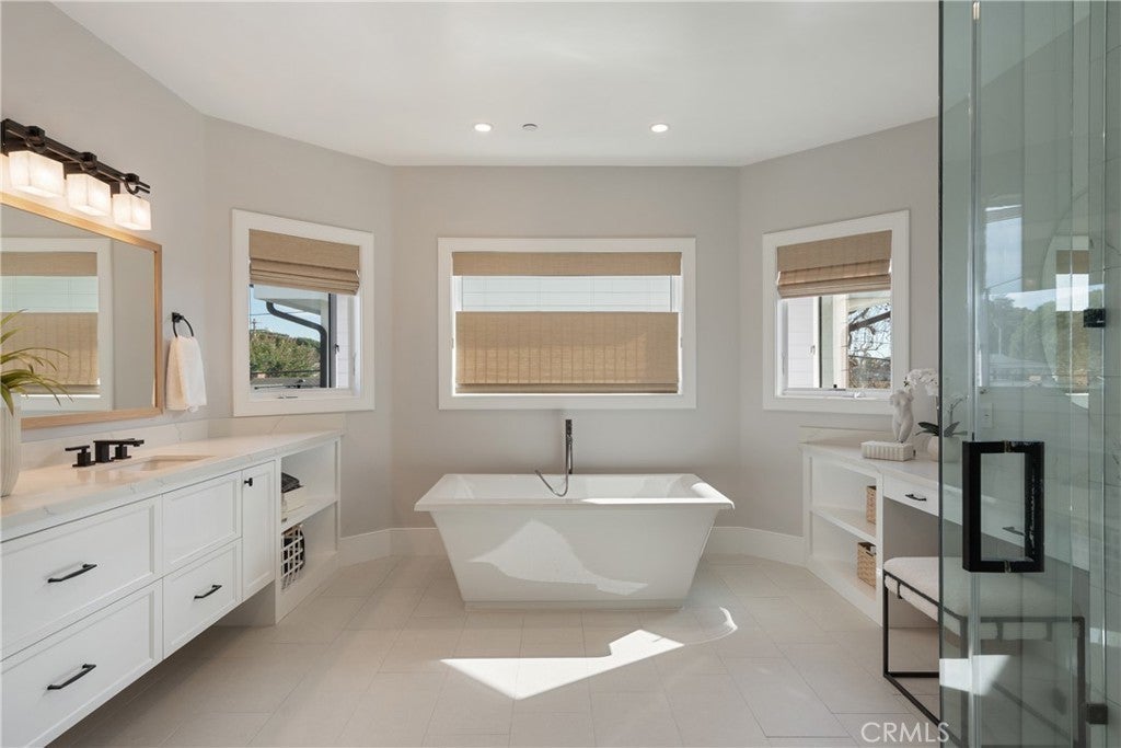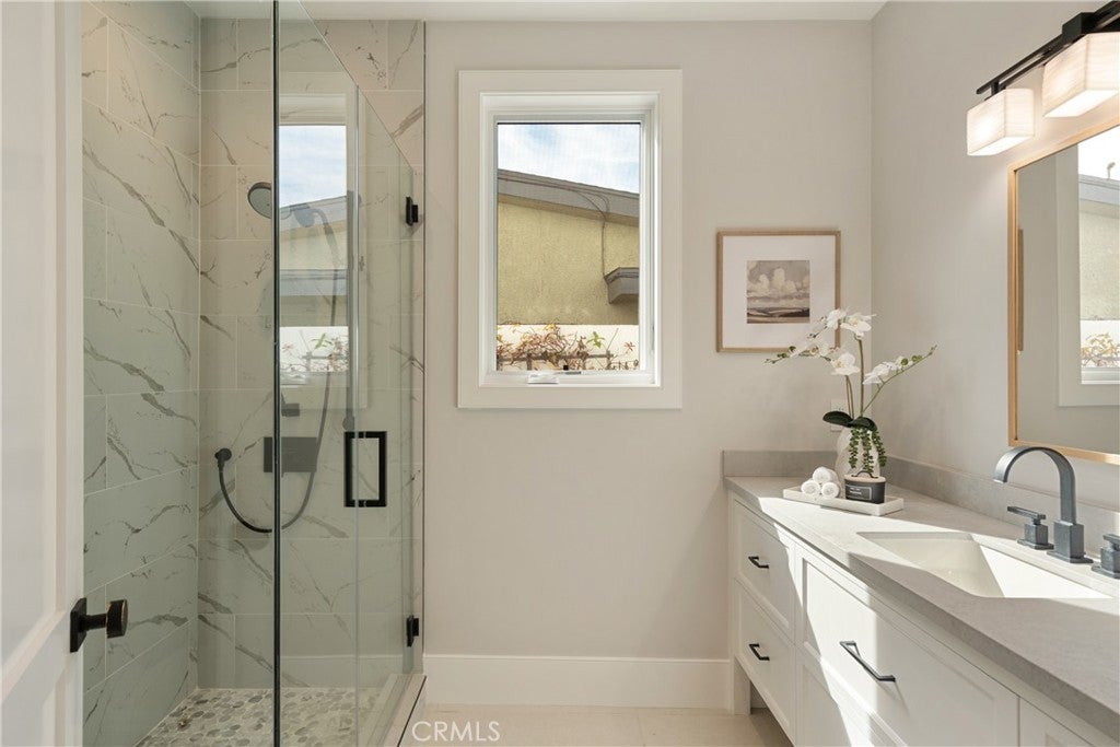 This exceptional 4,398 sqft residence is a 2021 ground-up new construction, thoughtfully designed in a contemporary farmhouse style and located on one of the most charming and sought-after streets in Newport Heights. Set on a 6,375 sq ft lot, the property features a 5-bedroom, 5.5-bath main residence, complemented by a private 1-bedroom, 1-bath Bonus room situated above the detached three-car garage, offering ideal flexibility for guests, extended family, or income-producing studio. A cobblestone walkway leads to an elegant Dutch door, opening into a light-filled interior defined by soaring ceilings and an open, airy floor plan. The main living level is designed for elevated entertaining and effortless indoor-outdoor living. Recent enhancements include professionally leveled flooring throughout the main residence, now finished with White Oak engineered hardwood, along with a full interior paint refresh, creating a refined and cohesive aesthetic. The chef’s kitchen is both functional and striking, anchored by a waterfall-edge island with seating for five and appointed with premium Thermador appliances, a custom German lazy Susan, a spacious walk-in butler’s pantry, breakfast nook, and formal dining area. Expansive pocket doors open to a private courtyard, offering a seamless transition to an inviting outdoor setting ideal for entertaining or quiet retreat. All five bedrooms are ensuite, including a desirable main-level suite for guests. The primary suite serves as a true sanctuary, featuring a fireplace, soaking tub, steam shower, walk-in closet, and private balcony. Located just minutes from the beach and within close proximity to Lido Village, cafes, boutiques, top-rated schools, and coastal amenities, this residence delivers a rare combination of architectural sophistication, modern comfort, and Newport Beach lifestyle appeal.