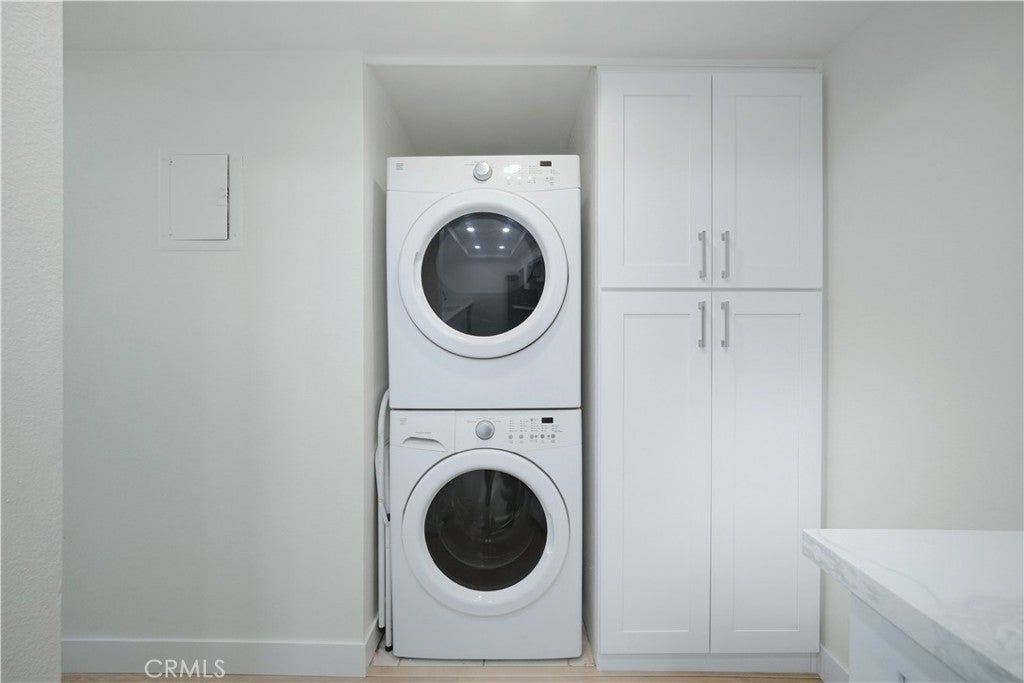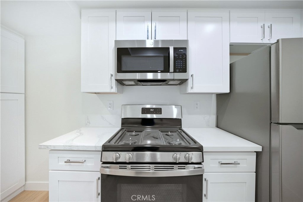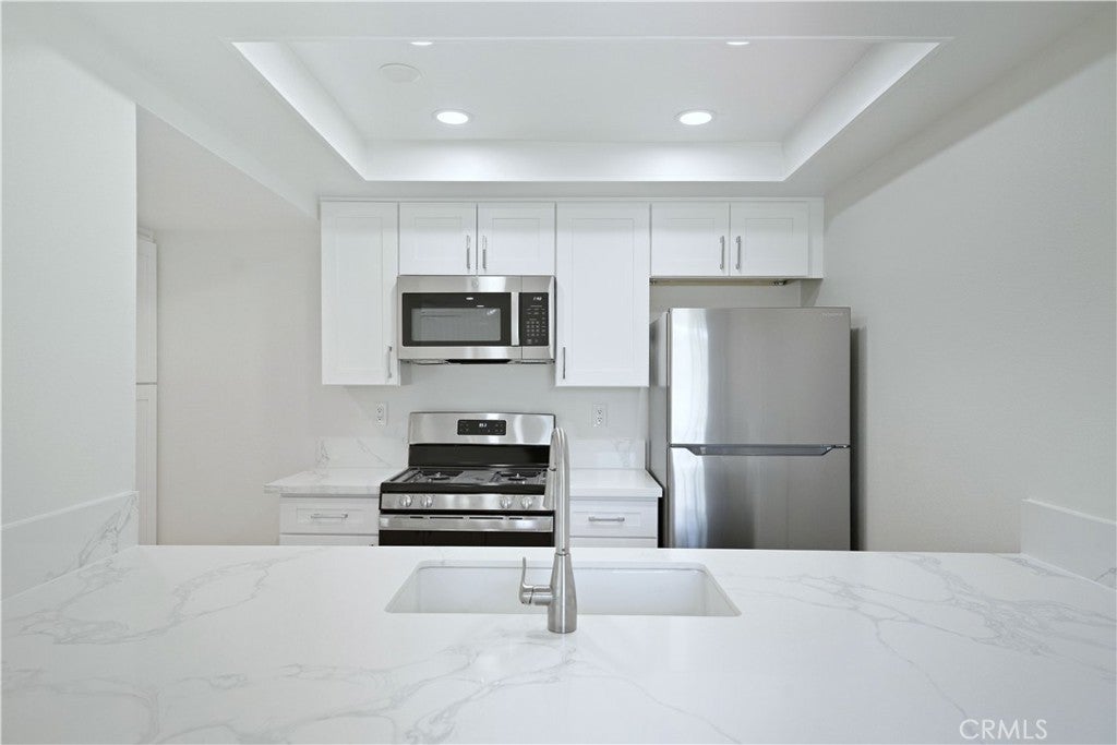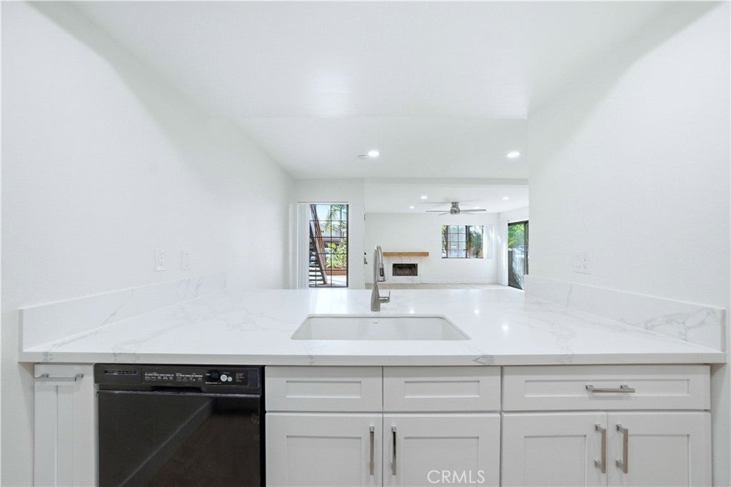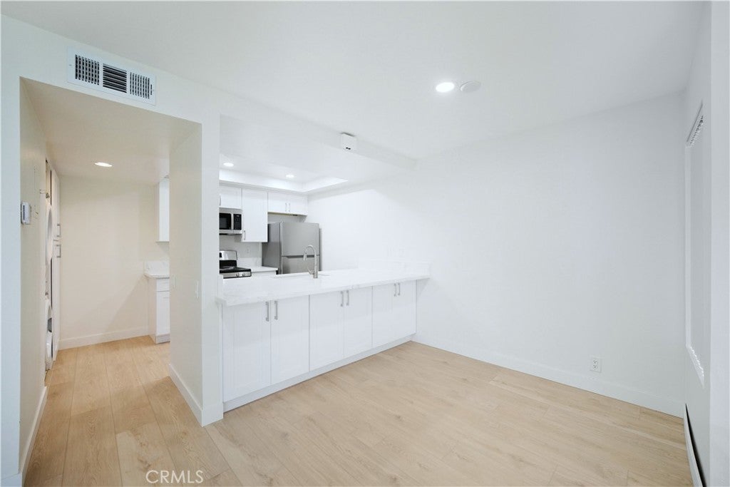 Exquisitely Remodeled Luxury End Unit! This impeccably redesigned 1 bedroom, 1 bathroom first-floor residence has been completely remodeled from top to bottom, offering refined coastal living at its best. The open-concept floor plan is highlighted by wide-plank vinyl flooring and an abundance of natural light, creating a sophisticated yet inviting atmosphere. The brand-new designer kitchen features sleek cabinetry, premium finishes, and all-new appliances, seamlessly flowing into the living space anchored by an elegant fireplace. The spa-inspired bathroom showcases modern fixtures and upscale details, while the convenience of an in-unit washer and dryer enhances everyday living. As a private end unit, this home offers an exceptionally large patio—ideal for entertaining or quiet relaxation—along with a dedicated carport parking space. Ideally situated near the community pool and just moments from Pacific City, downtown Huntington Beach, world-class dining, shopping, and the coastline. A rare opportunity to enjoy turnkey luxury in one of Huntington Beach’s most desirable locations.