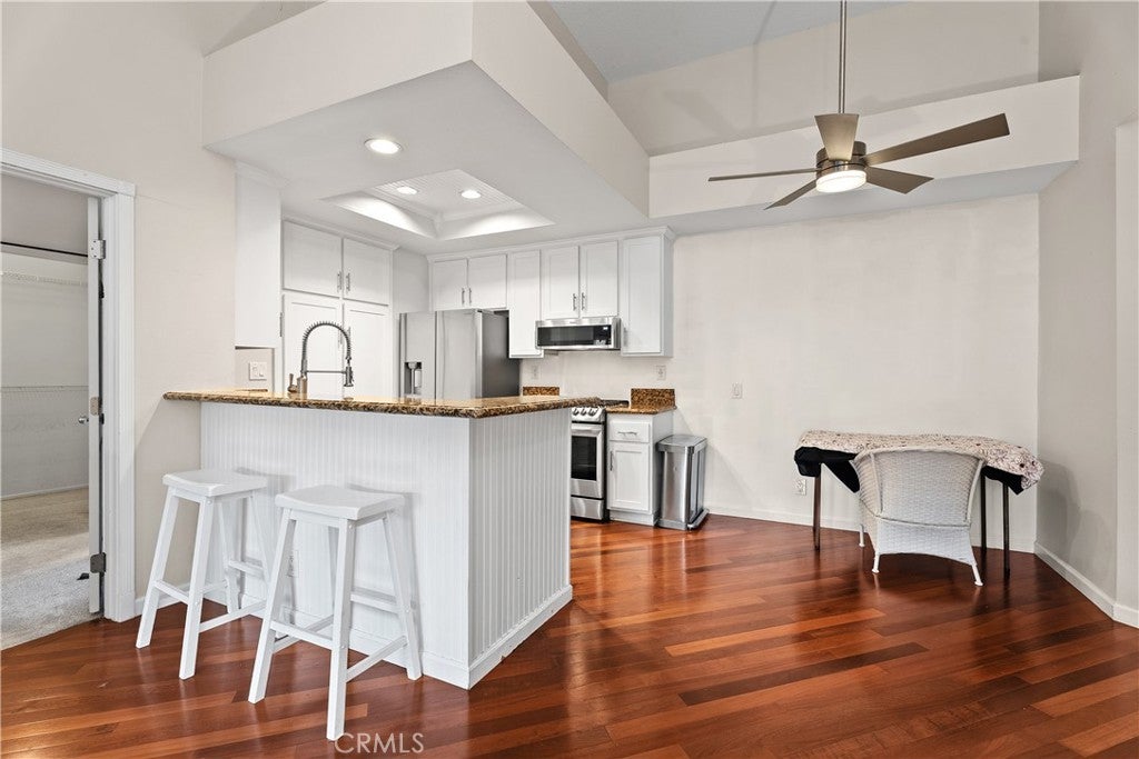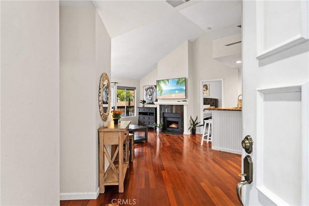 Penthouse 2 bed, 2 bath single level home with DUAL PRIMARY SUITES that both open to an enormous entertainer's dream balcony overlooking Milano at Rancho Niguel. Featuring tall architectural ceilings, rich wood floors, and a cozy gas fireplace, this unit was designed to bring the outside in, with loads of natural light and an open concept feel. The perfectly proportioned kitchen features tumbled granite countertops, stainless steel appliances, pristine white cabinetry with a large pantry, and recessed lighting. Both bedrooms are well sized with vaulted ceilings, recently remodeled private baths, and large closets. Convenient inside laundry room includes custom cabinetry and shelving. The resort style amenities of Milano at Rancho Niguel include a swimming pool, spa, gym, clubhouse, plus 6 EV charging stations. All this and just a short stroll to a plethora of shops, restaurants, grocery stores, movie theatres, and award winning Bergeson Elementary School! An absolutely perfect spot to call home!