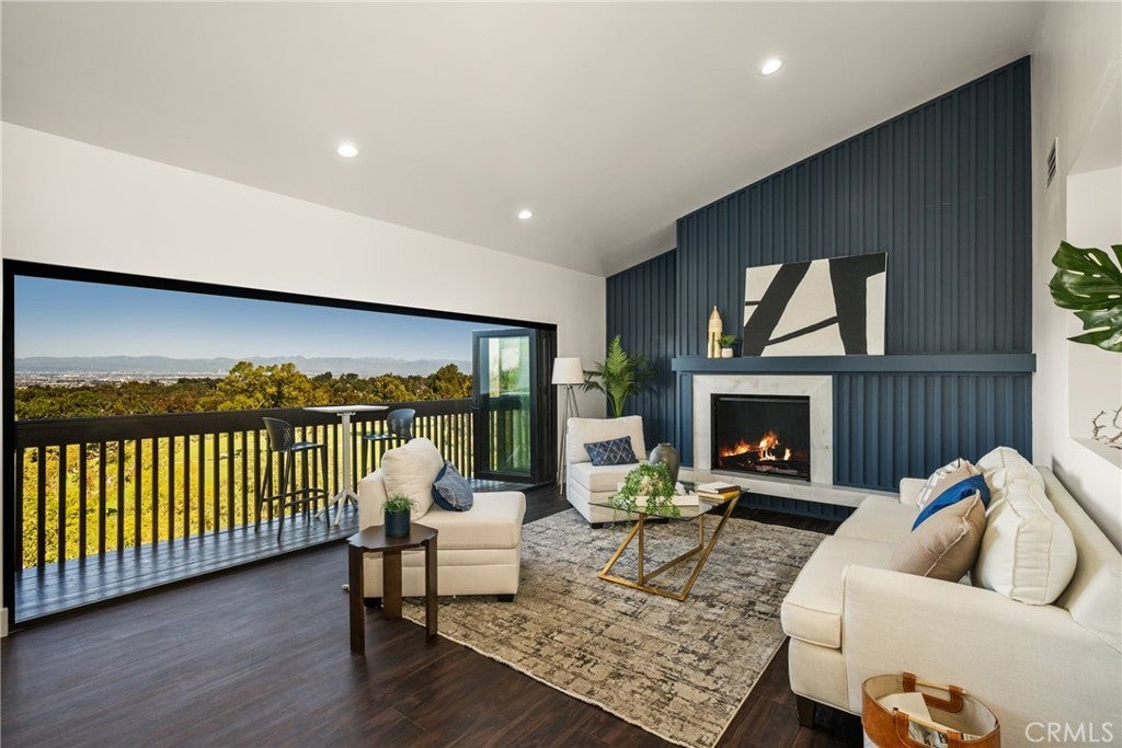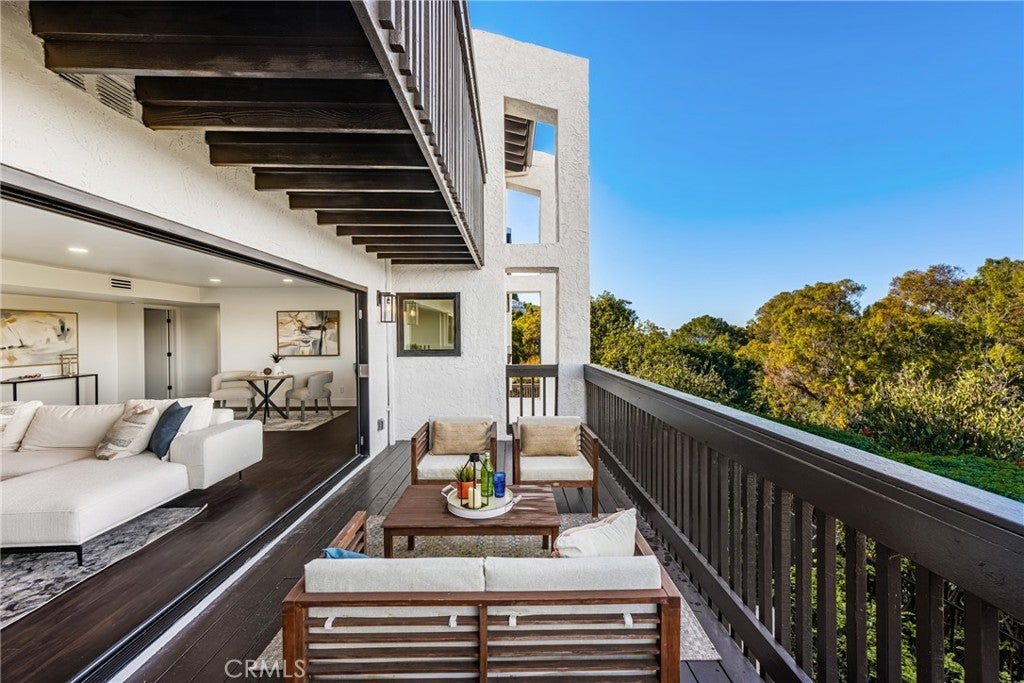 Tucked away on a quiet cul-de-sac and directly across from the prestigious Palos Verdes Golf Club, this beautifully updated home sits on an expansive 20,000+ square foot lot and offers commanding views of both the golf course and the Pacific Ocean from six private balconies. Bordering Malaga Cove / Palos Verdes Estates, the home boasts nearly 3,900 square feet of living space. The property features a reverse floorplan that places the main living areas and primary suite on the upper level, perfect for enjoying the sweeping views, while the majority of the bedrooms are privately tucked below. Both levels offer a light filled layout with brand new LaCantina win-doors and windows that bring the outdoors in. The spacious living room, formal dining area, and open kitchen flow effortlessly to expansive view decks, ideal for entertaining. The kitchen is equipped with matte white Café appliances that combine high end design with professional grade performance. The upstairs primary suite features a fireplace, walk-in closet, and its own private balcony. A guest powder room completes the upper level Downstairs, the home includes a second primary suite, ideal for guests or multigenerational living, plus two additional bedrooms that share a full bathroom. A large family and game room with a fireplace and built-in bar anchors the lower level, along with a dedicated laundry room and generous storage space perfect for a wine cellar or additional use. This home has been extensively upgraded throughout, including all new PEX plumbing, complete electrical rewiring, dual zone HVAC with two new heaters, two air conditioning units, all new ducting, and designer air registers. A tankless gas water heater, new Toto bidet toilets, Brizo plumbing fixtures, and a Generac backup generator add comfort and convenience throughout. All renovations and upgrades were completed with proper city permits and approvals, ensuring quality, safety, and long term peace of mind. The finished three car garage features vaulted ceilings, recessed lighting, and space for a car lift, while the wide driveway provides ample additional parking. The landscaped backyard includes mature fruit trees and space for a future garden or retreat. With thoughtful updates, panoramic views, and a prime location, 5 Yellow Brick Road offers a rare opportunity to enjoy refined coastal living with comfort, style, and room to grow.