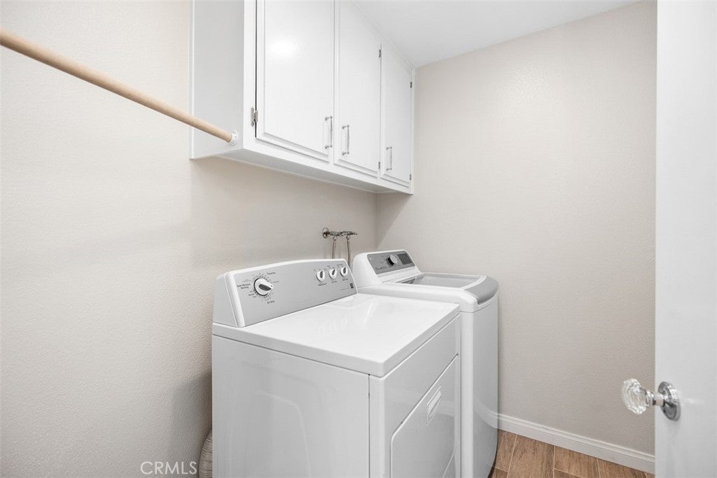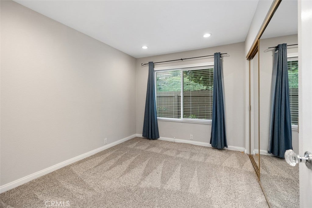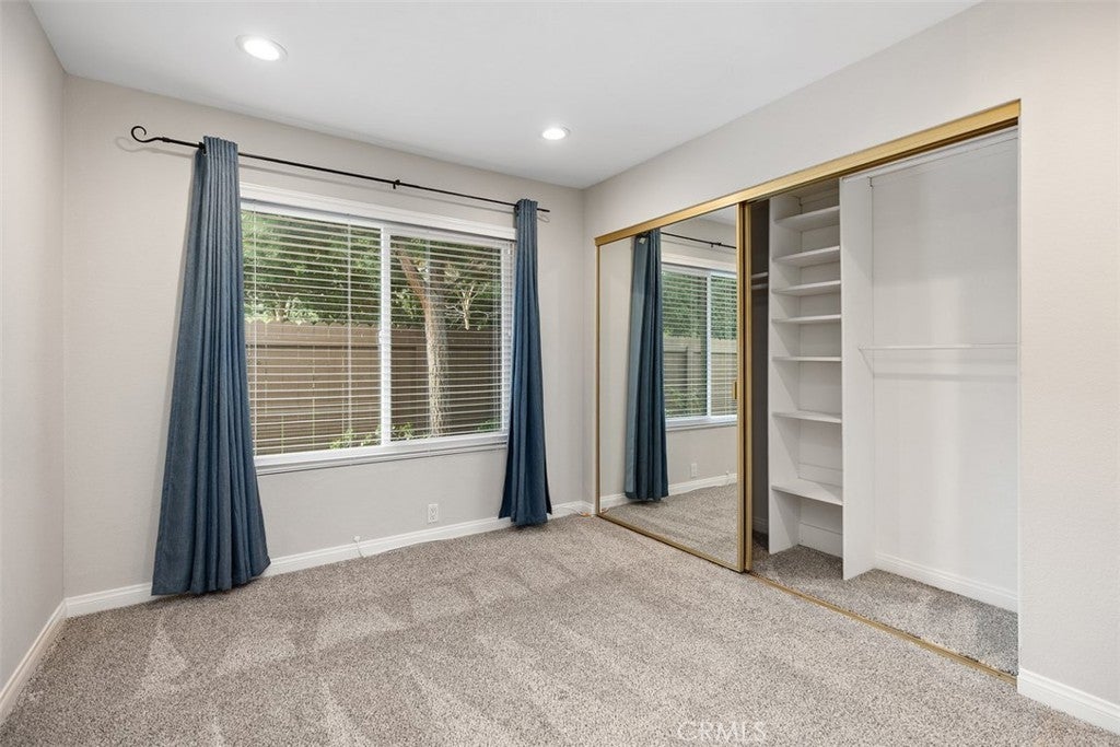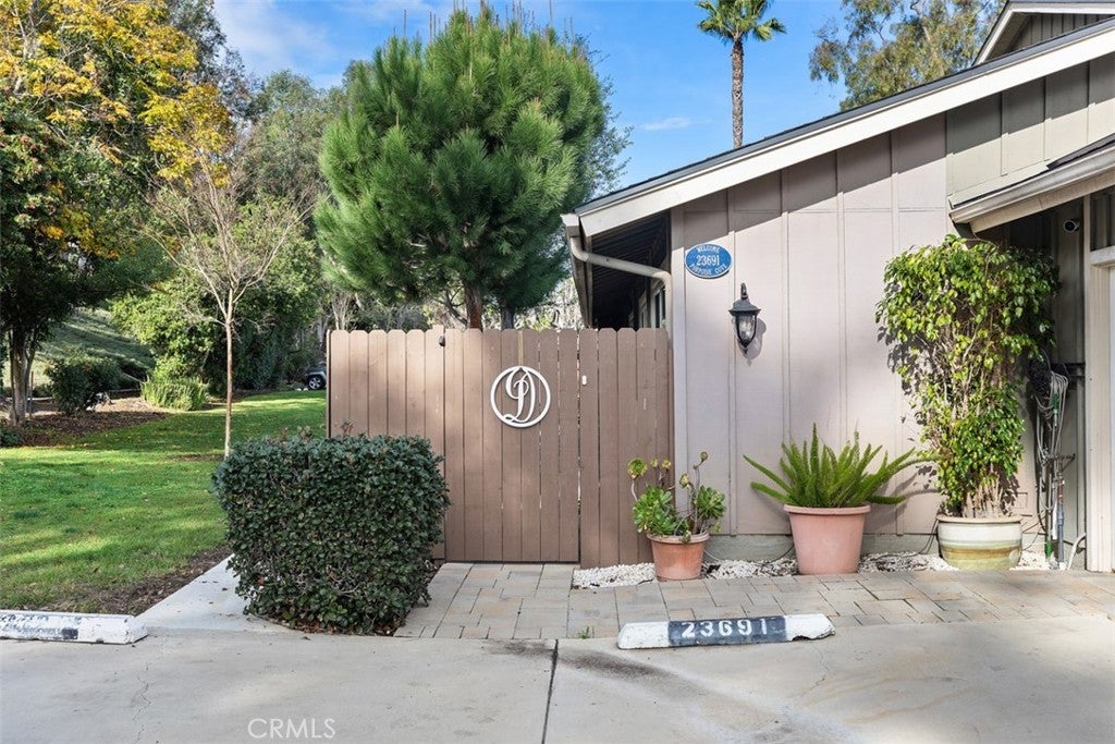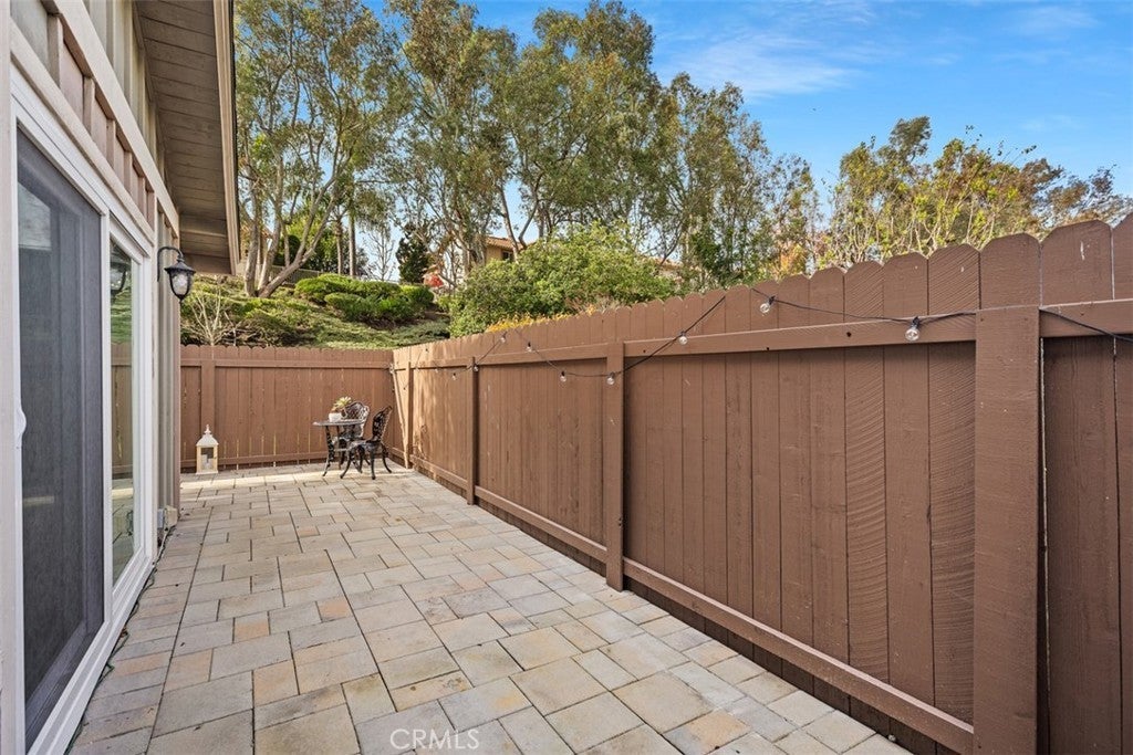 STUNNING SINGLE LEVEL END UNIT, 2 BED PLUS An OFFICE, Private Retreat in a Lush, Serene Laguna Niguel Neighborhood! Welcome to this beautifully upgraded and remodeled home, rarely on the market! Perfectly situated amid pristinely manicured landscaping and mature trees. This exceptional single-level residence offers two spacious bedrooms large enough to accommodate king size beds PLUS A PRIVATE DEN with charming new farmhouse doors—ideal as a home office, private retreat or 3RD BEDROOM. The vaulted living room ceiling creates an open, airy ambiance and flows effortlessly into the dining area, both showcasing private wrap around patio and lush, green, park-like views that bring the outdoors in. A cozy gas fireplace with ceramic logs anchors the living space, making it equally inviting for everyday living and entertaining. The chef’s kitchen is a true showpiece, featuring porcelain tile flooring in the kitchen and hallway, top-of-the-line stainless steel appliances, Cambria quartz countertops, a sleek glass tile backsplash, under-cabinet and recessed lighting, new cabinet hardware, and fresh paint. A stunning new dining chandelier adds a touch of elegance and warmth. Every detail has been thoughtfully upgraded: dimmer switches throughout, crystal and chrome door hardware, freshly painted interior including doors and trim, all new windows and sliding doors, a platinum security screen door, and a SimpliSafe security system with outdoor cameras for added peace of mind. Mirrored wardrobe doors in secondary bedroom. Washer and Dryer are included. Outdoor living truly shines with an oversized wrap-around patio, ideal for entertaining, children, and pets. Enjoy professionally installed pavers, a tranquil fountain, stylish new entry and planter lighting on dimmers and timers, white rock accents, lush plantings, new irrigation with timer, and a new 6-foot stained wood fence with secure front and rear gates—your own private outdoor oasis. 1 car garage with parking space right in front of your home. Turnkey, tranquil, and beautifully upgraded—this home truly has everything you need to call it home.