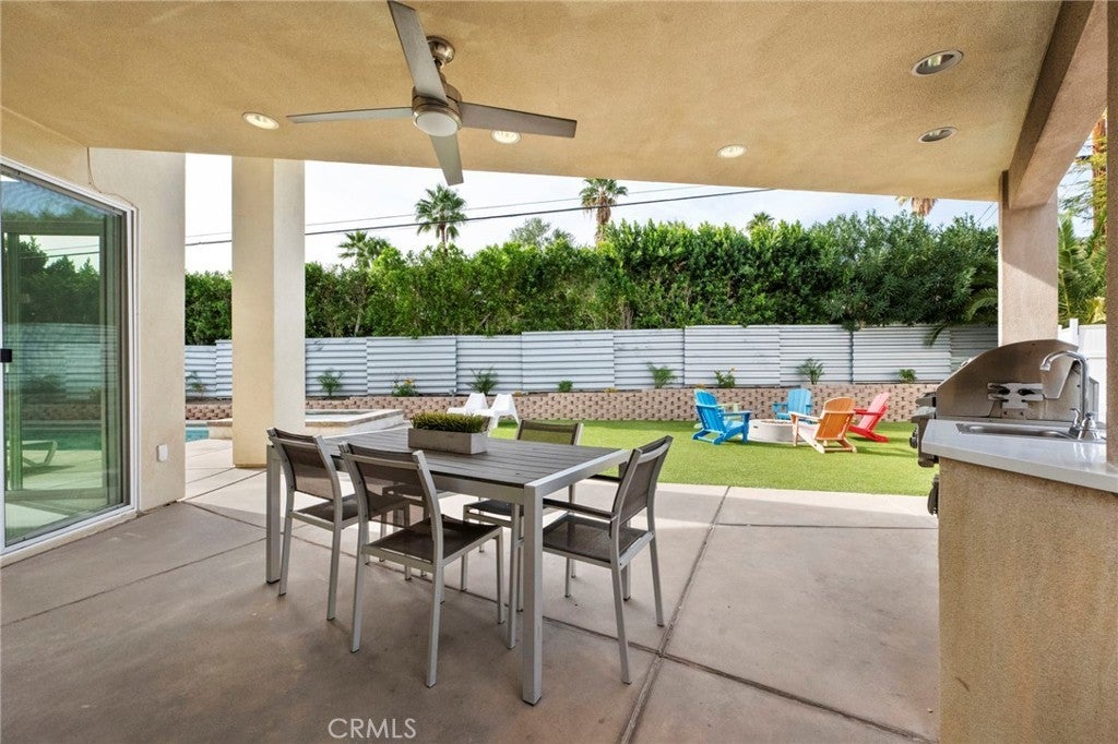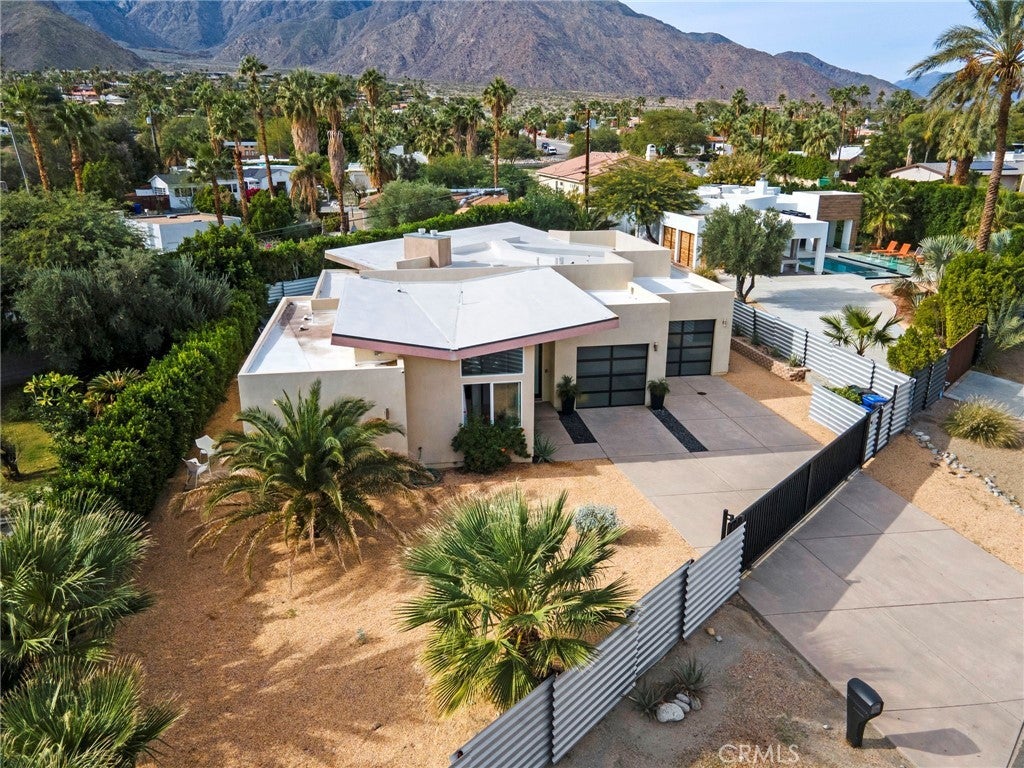 Architecturally striking and effortlessly livable, this 2015-built Palm Springs sanctuary delivers the mid-century vibe buyers crave—without the renovation and update headaches. Just one block off Palm Canyon Drive and a short jump to downtown, it’s rare to find newer single-family construction with no HOA this close to the action! Behind a perimeter wall and electric front gate, the home feels private and resort-like. The oversized driveway easily accommodates 3–4 cars, making entertaining and everyday life incredibly easy. Inside, the energy is bright, open, and elevated—soaring ~18-foot vaulted ceilings and clerestory windows flood the main living space with natural light and create an unmistakable sense of volume. From the living room, kitchen, and dining areas, take in a stunning view of Mount San Jacinto—a daily backdrop that instantly says “Palm Springs.” The open-concept kitchen is designed for both style and function, anchored by a generous island and a suite of stainless appliances. The primary suite is oversized and calming with a feature fireplace, a large walk-in closet, and seamless access to the outdoor living areas. Outside is pure Palm Springs: lounge poolside, unwind in the spa, gather around the firepit, and dine under the stars at the built-in BBQ kitchen, complete with an outdoor shower for true indoor/outdoor living. The pool and spa have been recently replastered in Pebble Tec, paired with all-new pool equipment, so the next owner can simply enjoy. The grounds are ultra low-maintenance with artificial turf, desert-tolerant landscaping, and landscape lighting with customizable color options that transforms the space after dark. Inside, the home has been meaningfully upgraded with fully remodeled bathrooms, including new copper piping, bringing both style and peace of mind. Offered TURNKEY furnished, this is the kind of home where you can walk in, unpack, and start living immediately—stylish, comfortable, and fully dialed-in from day one. And for those seeking flexibility, the property is located in a neighborhood where a buyer may apply for and obtain a short-term rental permit (no wait list) ... Buy this house, apply for your license and it's ready to go! A design-forward, light-filled retreat that lives like a private resort—right where you want to be in Palm Springs.