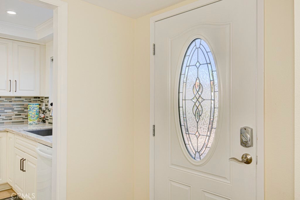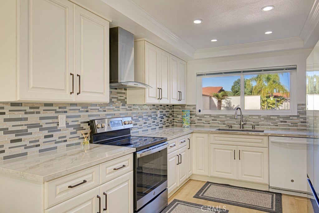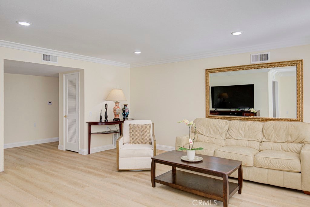 Welcome home! This lovely, bright Villa Serena home (3BDR/2BA) is the most popular model in prestigious Gate 11 and boasts a flowing, functional, and open floorplan that affords privacy, natural lighting, and greenery soothing to the eyes throughout from each room. As you enter through the front gate, you will see a beautiful brick courtyard tastefully landscaped with diverse flowers and mature plants. The back of the home has a spacious patio, accessed through sliding doors from the living, dining, and master bedrooms. What a perfect outdoor environment to entertain family and friends or enjoy your morning coffee! The kitchen window overlooks the front courtyard and thus gets natural light inside while providing you with a peaceful view of the neighborhood outside. The kitchen boasts upgraded quartz countertops, an updated stainless steel range hood, intricate backsplash, elegant off-white cabinetry, newer recessed lighting and appliances. The living room is expansive with a wood-burning fireplace and built-in bookcase. The master bedroom is larger than most others with its expanded addition, including a large private sitting area; large walk-in closet; an-suite bathroom with double sinks; large walk-in shower; and its location maximizes peace and quiet. The second bedroom has new window treatments, large mirrored sliding doors with closet space and convenient proximity to the second bathroom. The third bedroom has been converted into an office that looks out to the natural, green, landscaped courtyard and also has direct access to the laundry room and garage. With a central air/heating system, this lovely home also has double-paned windows/sliding doors, skylights, smooth ceilings, and a separate laundry room with washer/dryer. In 2023, the home was repainted throughout and luxury, modern, waterproof vinyl flooring was installed in most of the home. Located in the gated community of Laguna Woods Village—the premier, age 55+ active community in Orange County—this home is conveniently located with proximity to the Irvine Spectrum, Laguna Beach among other towns and offers many wonderful amenities such as a 27-hole golf course, tennis courts, separate pickleball courts, 5 swimming pools, 3 fitness centers, RV storage, garden center, and 7 clubhouses, including Clubhouse 4 that offers amazing classes in art, ceramics, wood shop, jewelry-making, and sewing, and much more. This updated, well-appointed, and well-maintained home won’t last long!