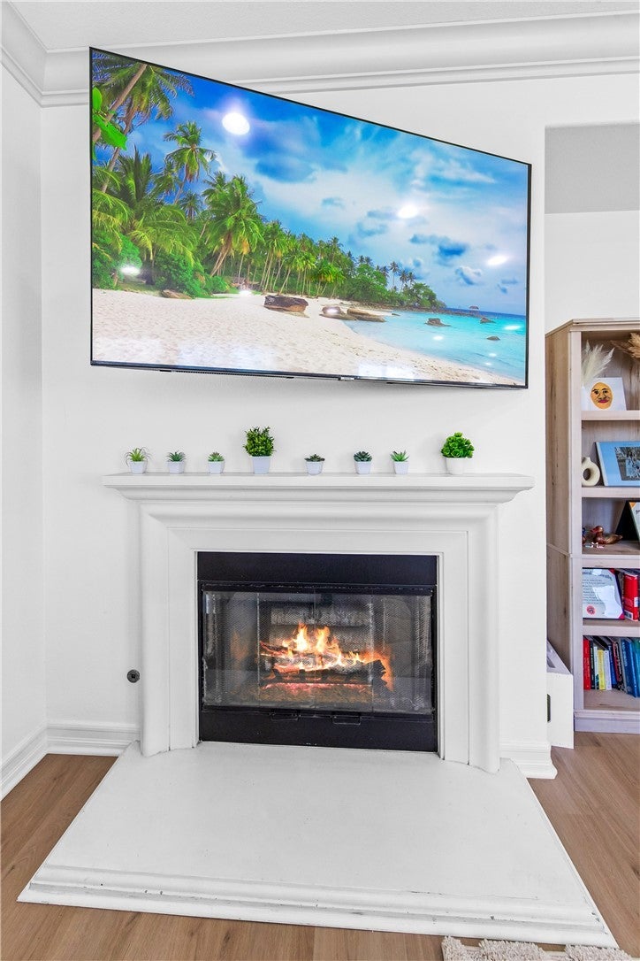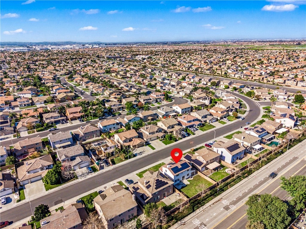 Located in the highly desirable Eastvale / Heartland community, this beautifully maintained two-story home offers 4 bedrooms, 2.5 bathrooms, and a flexible floor plan ideal for modern living. The open-concept layout features a spacious kitchen with ample counter space, wood cabinetry, and a center island, seamlessly flowing into the dining area and family room with a cozy fireplace—perfect for both everyday living and entertaining. The first floor includes a convenient half bathroom and a versatile bonus room that can be used as a home office, playroom, or optional fourth bedroom. Upstairs, the generous primary suite features dual sinks, a soaking tub, a separate shower, and a large walk-in closet, along with two additional bedrooms and a full hall bathroom. Upgrades include laminate and hardwood-style flooring, tile bathrooms, crown molding, and double-pane windows. The exterior has just been freshly painted, enhancing curb appeal and move-in readiness. Situated on a large, landscaped lot, the backyard offers plenty of space for outdoor entertaining or a future pool. A two-car garage with a convenient drive-through door adds functionality and easy backyard access. Additional highlights include solar energy (leased system), a low tax rate, and the rare benefit of no HOA. The home also includes smart home features, such as a smart thermostat, smart lighting, smart door locks, and a smart garage door opener for added comfort and efficiency. Ideally located within walking distance to award-winning schools, parks, and shopping, with easy access to the I-15 freeway and nearby Eastvale Square. This is a great opportunity to own a spacious, turnkey, and energy-efficient home in one of Eastvale’s most sought-after neighborhoods.