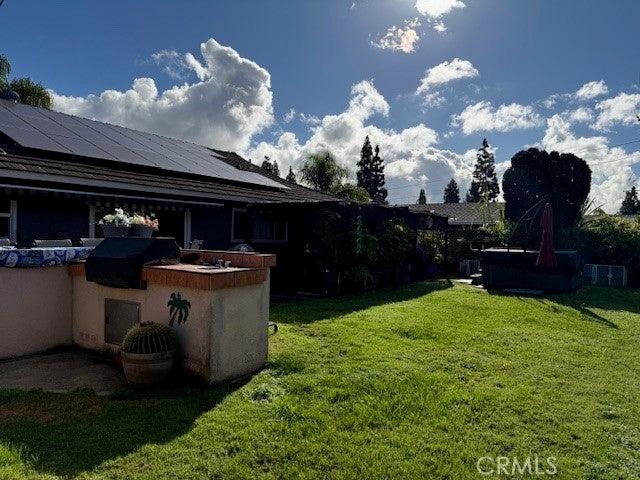 Well Kept home in a desirable area of Garden Grove . Central Heat and Air conditioning . Solar panels paid off . Batteries are optional. Gas fireplace in living room . tile floor in living room and kitchen . Kitchen remodeled with new cabinets , granite kitchen top .Recessed lights in kitchen ceiling , living room and hall way Appliances stay with the house . Ceiling fan in every bedroom .2 bedroom used as offices . Block walls surrounding entertaining back yard Walk to school , shopping center , easy access to fwy 22, 5 57.