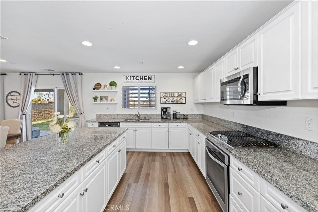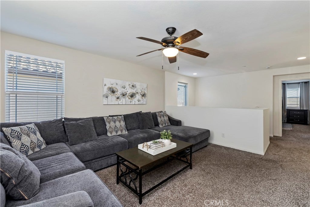 Home with a View in this high demand, low inventory AnaVerde neighborhood! You don't want to miss out on this highly desirable open layout with 4 bedrooms and 3 bathrooms, this home gives your family room to grow. Downstairs has a nice size bedroom and bathroom for ease of access. Upstairs has a second living area with a huge loft and laundry room that is spacious enough to work remotely in! The primary suite is a true retreat with a large en suite featuring a separate soaking tub and shower. The walk-in closet is large enough to keep the bedroom serene and uncluttered. Heading back Downstairs, the kitchen is an entertainer's delight! There is space for a full size dining room table and it's open to the family room with an oversize island, storage galore, a homework nook and a walk-in pantry. The family room opens to the private, low maintenance backyard featuring a covered concrete patio for outdoor activities any time of year. The tranquil view of the hills is the perfect backdrop for an evening bar-b-queing and relaxing by the firepit under the ambiance of the outdoor lighting. Ana Verde is one of Palmdale's most loved communities, with trails, parks, and a neighborly family friendly feel.