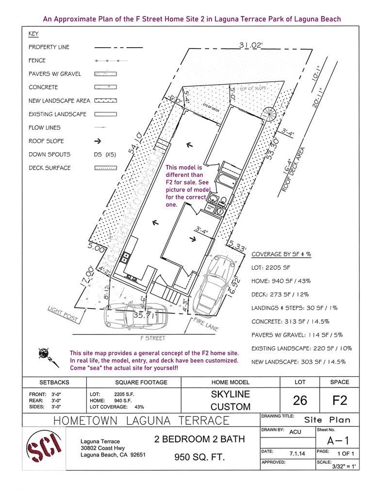 “Sea” ocean panorama from nearly every inch! Awaken to the ocean. Relax to island sunsets. Enjoy city lights at night. Here’s coastal living at its finest in a newer turnkey modern beach home with 180° views: Luxury constructed with high ceilings & doors. Light filled by skylights & clerestory windows. A fresh neutral interior. Remodeled full-size kitchen & bath. An open flowing great room: kitchen, dining, living room, and niche. Two bedrooms with walk-in closets. Bedroom I has incredible ocean views. Bedroom II "seas" blue ocean thru its entry and mountains thru its windows. And its updated bathroom has a walk-in shower | F2 also offers outstanding outdoor living: A quiet location - protected from road noise yet so close it’s easy access. With wrap-around decks, green faux lawns, and a bearing orange tree. A fully fenced compound with gated parking, surf racks, and 60'L dog run. Plus, convenient parking for 2 at its front gate. F2 is the quintessential turnkey beach home including A/C, full-size appliances, and furnishings for purchase, as well | Perfectly situated in terrific Laguna Terrace with fun & relaxation at your doorstep: a few yards from its cool clubhouse; private gym; heated-all-year pool & spa; fireplace lounge with WIFI; event room with kitchen; and palm-surrounded patios. Plus, impeccable staff keeping it tip-top | F2 is ideally located to leave the car behind! Above Aliso Plaza shops & dining. Across PCH from The Montage and Treasure Island parks, beach & tidepools. Around the corner from on-the-sand Lost Pier Café, Aliso Beach, and The Ranch Golf Resort. Then, travel by trolley thru Laguna and neighboring coastal towns. Or boat from Dana Point Harbor to Catalina Island. And don't miss Festival of Arts, Pageant of The Masters, Sawdust Festival, concerts in parks, and so much more. Great for all ages with prestigious Laguna Beach schools – Go Artists! - plus classy downtown Susi Q Senior Center | If you could buy this on fee land, it’d likely be $3,000,000 and you’d pay PITIA around $20,000/mo*. Yet in Laguna Terrace, the F2 Beach Home is just $438,888 with monthly $5,250 land lease and about $250 insurance, plus tiny depreciating annual taxes*. (*PITIA & costs are approximated.) Plus, you may qualify for the Homeowner's Tax Exemption. Don’t miss this value! Come “seas” the day!
