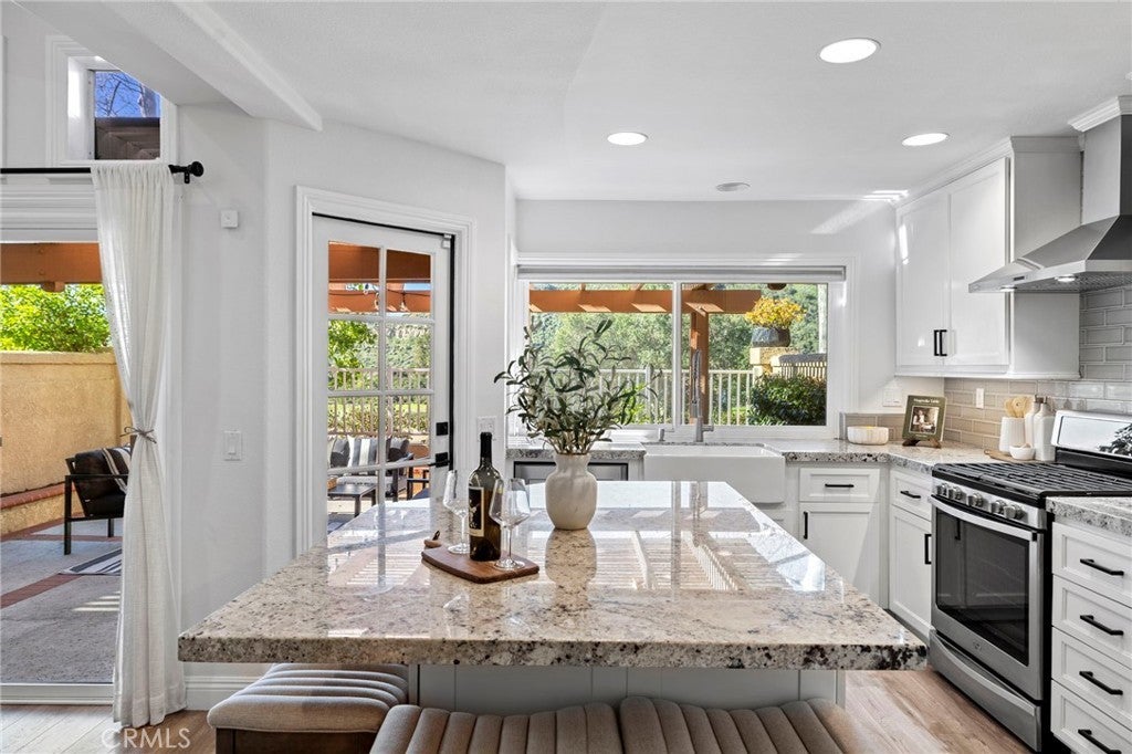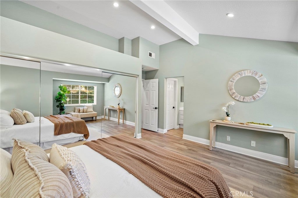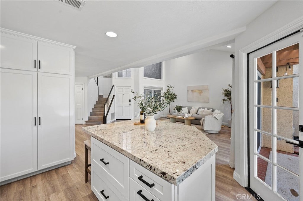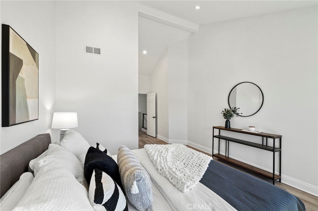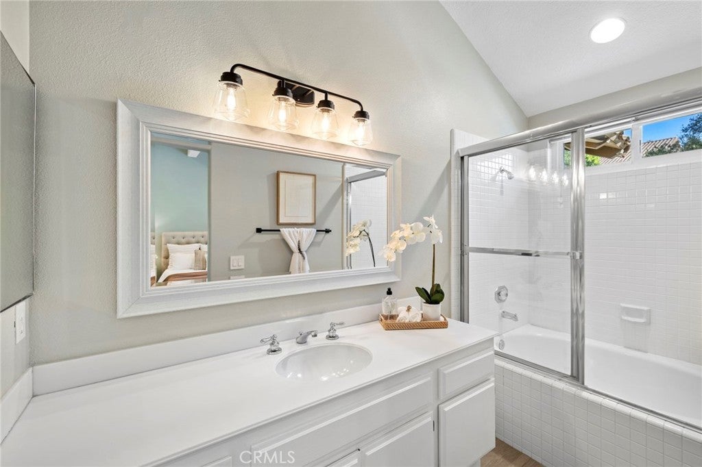 Ideally located just steps from Tijeras Creek Golf Club, this beautifully upgraded Tierra Linda townhome is an exceptional opportunity to enjoy comfortable, low-maintenance living in a highly desirable Rancho Santa Margarita community. The moment you step inside, you’re greeted with soaring vaulted ceilings, large windows and sliders allowing natural light to pour right in. The spacious living room features a cozy gas fireplace and opens effortlessly to the dining area and kitchen, providing a functional and inviting layout. The kitchen is highlighted by stainless steel appliances, white shaker cabinetry, farm sink, subway tile, granite countertops, and a generous island that provides additional storage, bar seating for four and prep space. This unit features a rare and fully open-concept great room - a huge upgrade from the original model. The living space, kitchen, and dining share one room with no interfering beams or walls creating one impressive living area with 2-story ceilings. A convenient powder room on the main level services the great room with direct garage access. The private outdoor area has been thoughtfully updated with fresh landscaping, a newly-constructed pergola, and a new patio door while providing picturesque views of the surrounding hills. Upstairs, you’ll find two generously-sized primary bedrooms that have been updated with luxury vinyl plank flooring. The rear suite offers vaulted ceilings and major views out to open, undeveloped land with a major trail system. The front bedroom is also very spacious with vaulted ceilings and mirrored closet doors. Each bedroom offers a private en-suite bathroom and ample closet space (the rear features a large walk-in). Both bathrooms are well-appointed with ample counter space and storage. The rear has a walk-in shower and the front offers a shower and tub. Other upgrades include a new HVAC system, fully re-piped, luxury vinyl plank flooring on the stairs and entire second level, and select windows have been replaced. Enjoy a community in top condition, with the exterior being recently painted and the HOA currently in the process of completing a re-roofing project across the neighborhood. All residents also have access to premium amenities including a pool, spa, BBQ area, sport courts, and full SAMLARC privileges. Ideally located near award-winning schools, scenic parks, dining, shopping, and major commuting routes, this turnkey property is move-in ready!
