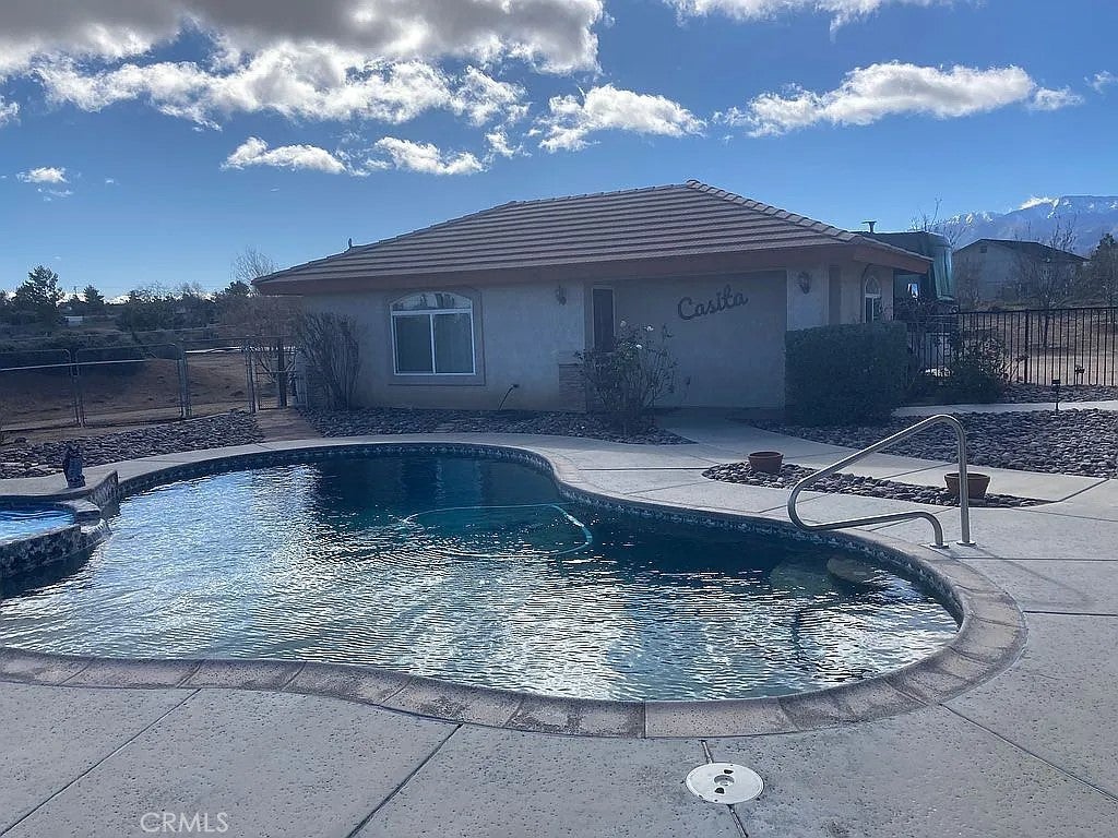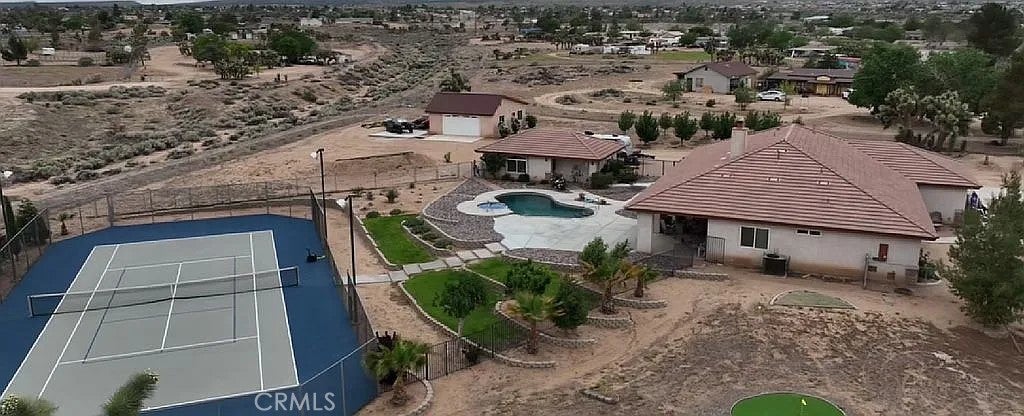 This property has it all. Privacy, high efficiency, recreational amenities, California Distinguished School, convenient shopping. The main house is a 2,219 sq. ft. split floor plan with 3 large bedrooms 2-1/2 baths and a 3-car extra deep attached garage. The ADU (Casita) (Guest House) is a 650 sq-ft 1 bedroom, 1 bath with its own laundry and kitchen. The estate includes a heated saltwater swimming pool, raised spa, tennis/pickle ball court with lights. There is also an 832 sq-ft 2-car 32-ft deep detached garage (workshop) insulated and drywalled with 220AC, and 8.5 kwh owned solar system. The pool is heated by both natural gas and/or a pool solar system that uses the sun. The electric solar provides all electricity so you will not have an electric bill. Heritage School (A California Distinguished School) is within walking distance. Bus stops are within walking distance. Phelan is an unincorporated rural living area with lots of horses, large lots, open spaces, privacy yet close to shopping and dining. This home is located 6 miles from the new Amazon Middle Mile distribution center. In addition, this home has 2x6 exterior walls with R-19 insulation, 90% efficiency heat, 16 seer AC and CFL/LED lighting throughout. The windows are dual pane V-Groove highly efficient and lovely! All utilities are in the road so no telephone poles. Internet is high speed fiber-optic. The property includes a security and camera system for peace of mind. Wood stove. Extra deep garage. RV parking. Pool solar. Fully landscaped front and back and 90% irrigated. Quiet neighborhood. Excellent family gatherings!