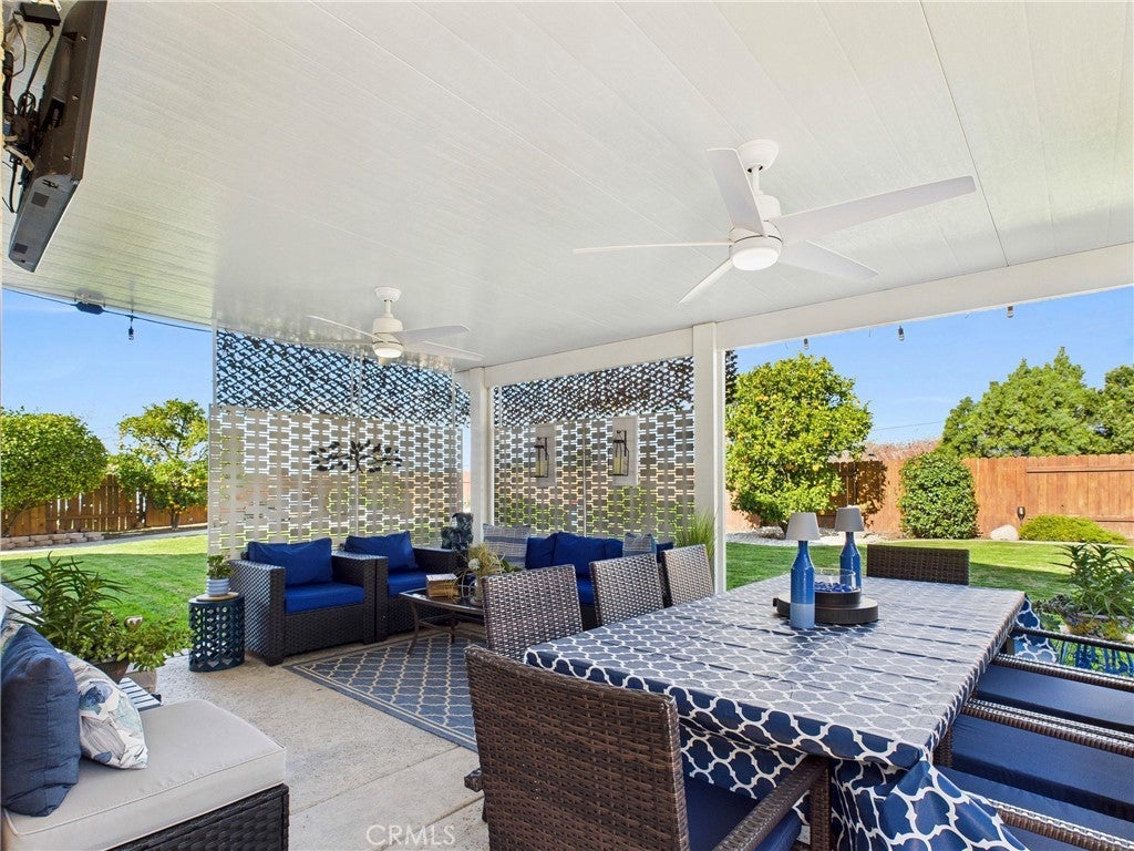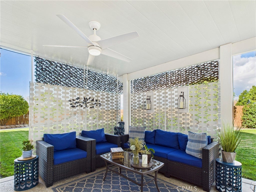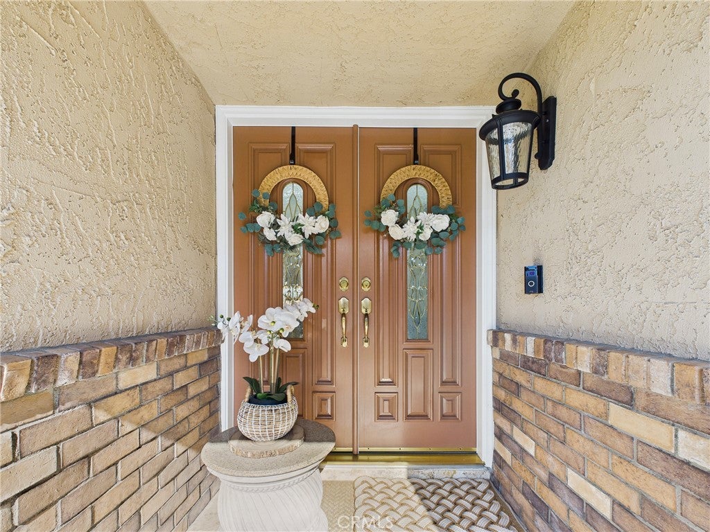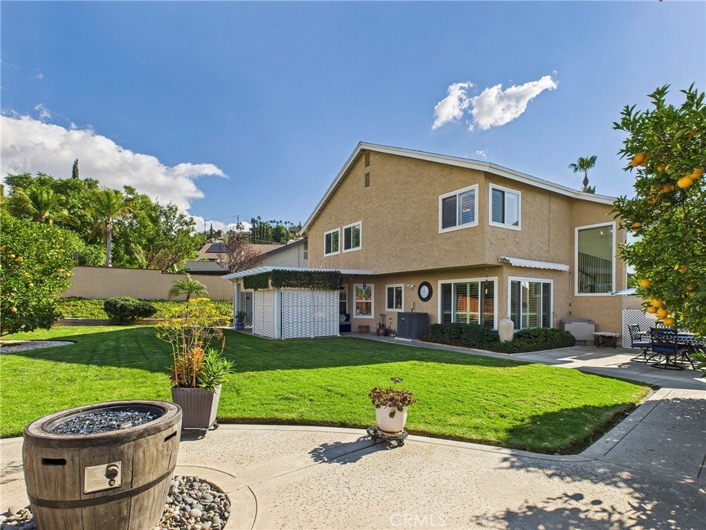 Beautifully maintained 4-bed, 2.5-bath single-family home on a quiet cul-de-sac in Grand Terrace. Offering 2,306 sq. ft. of living space on a 12,580 sq. ft. lot, this home features extensive 2021 updates including a full kitchen remodel with new appliances, guest bath remodel with porcelain soaking tub, flooring replacement throughout, recessed lighting, and central air. Additional upgrades include dual-pane windows (2018), plantation shutters (2019), mahogany double front door, stone entryway, and an Alumawood patio cover. Outdoor spaces include landscaped front and rear yards, enclosed patio, fire pit, and sprinkler system, with mountain views from the property. Attached 2-car garage and no HOA. Pride of ownership throughout and truly move-in ready, with convenient access to parks, shopping, and freeways.