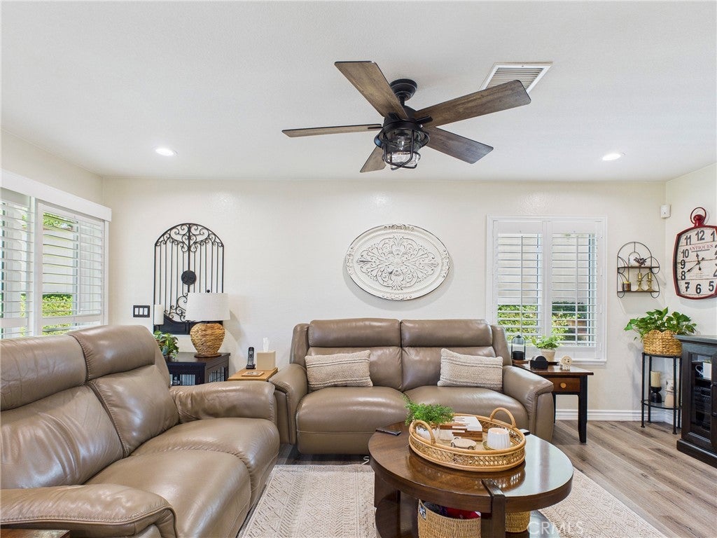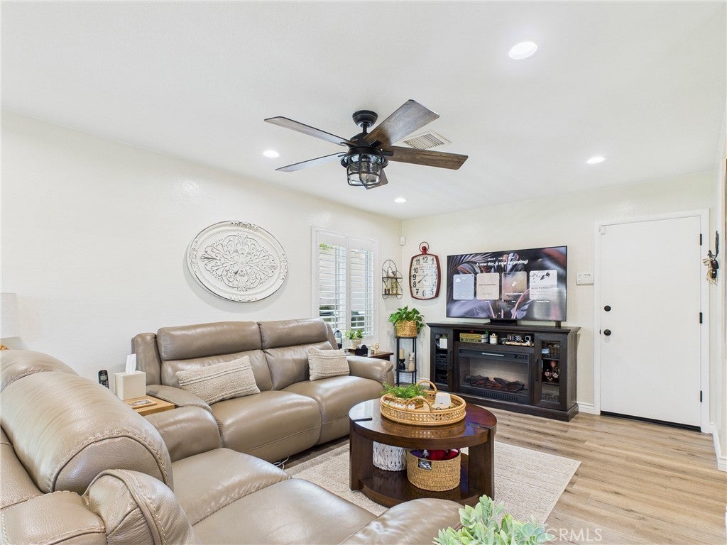 Beautifully maintained 4-bed, 2.5-bath single-family home on a quiet cul-de-sac in Grand Terrace. Offering 2,306 sq. ft. of living space on a 12,580 sq. ft. lot, this home features extensive 2021 updates including a full kitchen remodel with new appliances, guest bath remodel with porcelain soaking tub, flooring replacement throughout, recessed lighting, and central air. Additional upgrades include dual-pane windows (2018), plantation shutters (2019), mahogany double front door, stone entryway, and an Alumawood patio cover. Outdoor spaces include landscaped front and rear yards, enclosed patio, fire pit, and sprinkler system, with mountain views from the property. Attached 2-car garage and no HOA. Pride of ownership throughout and truly move-in ready, with convenient access to parks, shopping, and freeways.