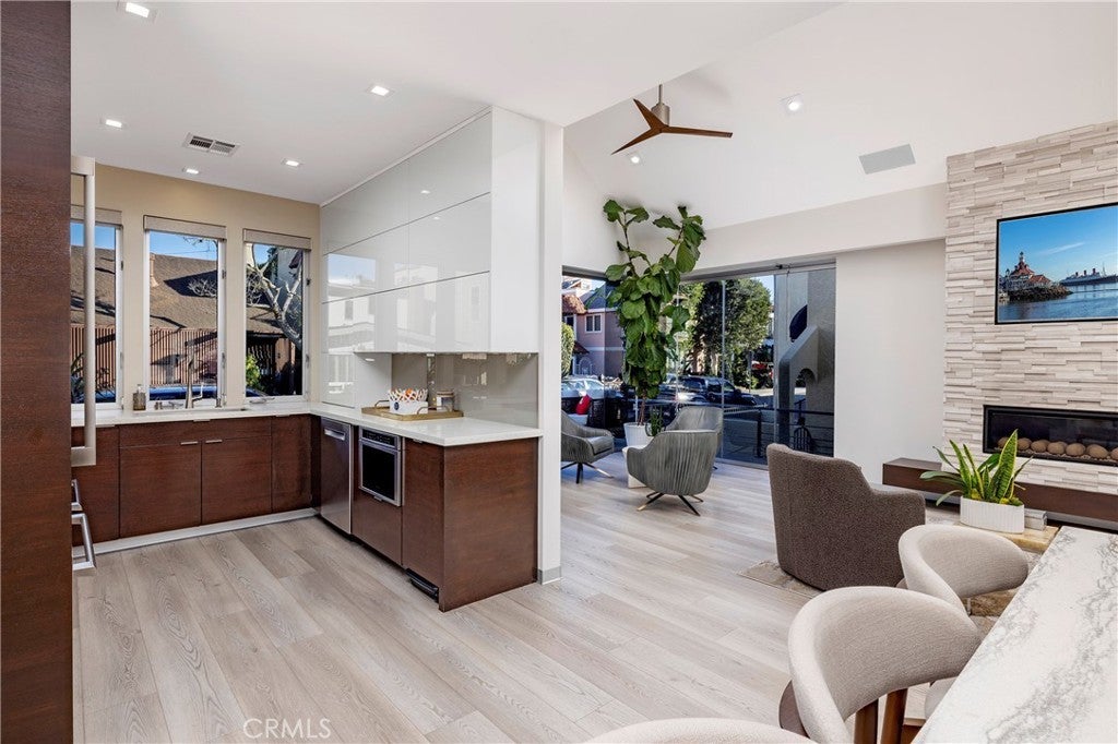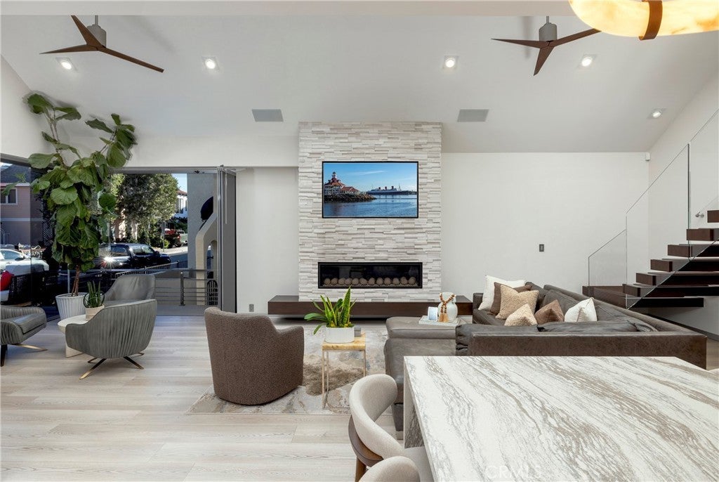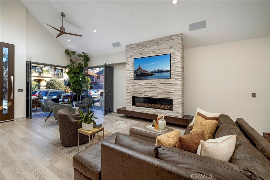 A fresh, accommodating collection of spaces reflecting a refined aesthetic and quality craftsmanship set in one of the region’s most sought-after enclaves – Naples Island. With thoughtful material and technological enhancements, this stylish property recently underwent a complete rebuild and reimagination – taken down to one pre-existing wall. Three bedrooms, two baths, and a delightful assemblage of living areas now present a bright and sophisticated environment that embodies the elements of a modern lifestyle. The carefully selected appointments and amenities are suited to discerning taste, with resilient finishes appropriate for living near the water. A small selection of details include – an oversized 10’ entry; elevated ceiling heights in the interior and the garage; barn- style doors throughout; a floating glass stair; custom millwork and built-in kitchen accoutrement hidden housings; Thermador appliances; Luxury Vinyl Plank flooring set over white porcelain tile; custom aluminum detail baseboards; designer fixtures and lighting; motorized window coverings with valances; a Sonos sound system; privacy windows on neighboring sides and engineered framing for Coverglass, optimizing the rare corner view windows; all-LED conversion interior and exterior; new electrical paneling, switches, outlets, and wiring; dual split HVAC; new PEX efficient plumbing; heavy insulation for efficiency and sound; and an installed security system. A further complement, improving the exterior experience, is a private deck – raised and modified with stainless steel railings; an outdoor shower; a 12’-height garage making it high enough to enable a car lift, along with 220V power. An extraordinary opportunity to enjoy the benefits of a sophisticated domain with ideal proximity to the highly desirable local recreation, dining, shopping, and resources.