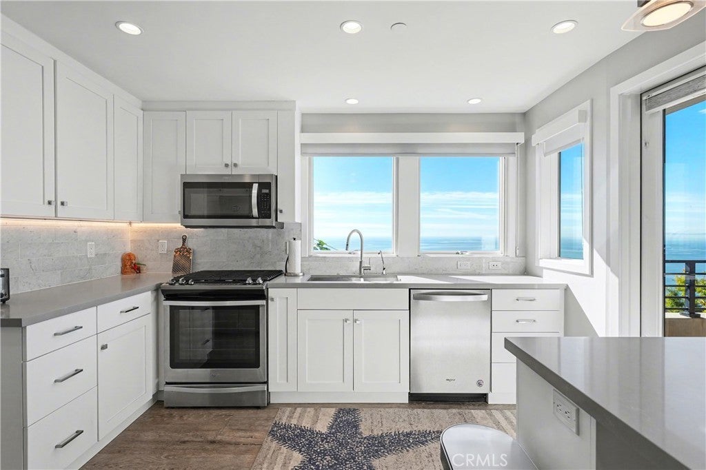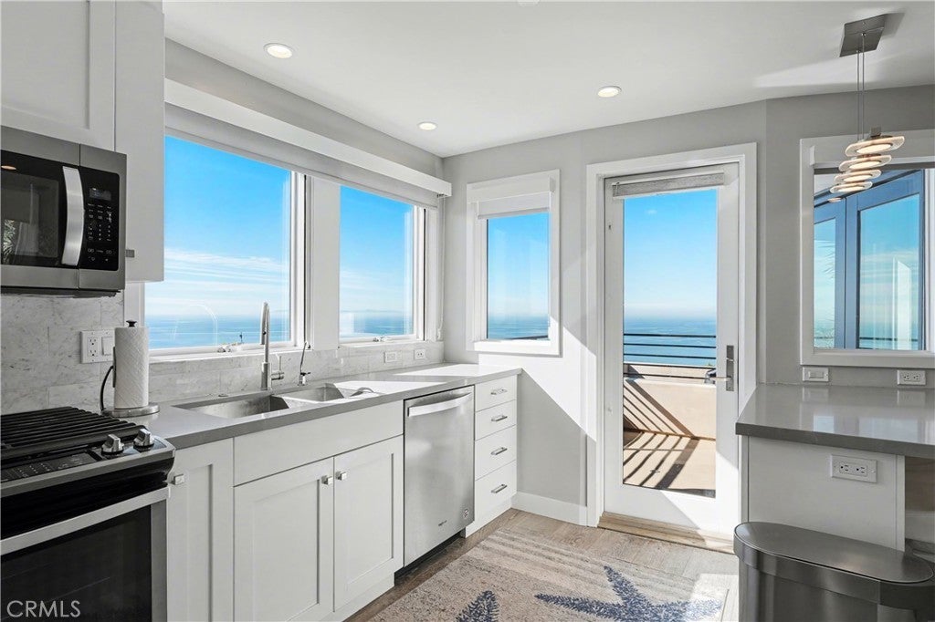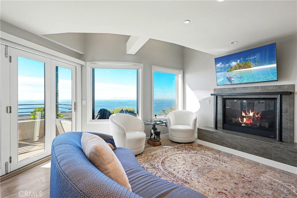 A true top-of-the-world retreat, this truly magical two-bedroom residence with an additional office/3rd bedroom option offers breathtaking panoramic ocean views from every room. Sweeping coastal vistas stretch as far as the eye can see, creating a rare and unforgettable living experience in Laguna Beach. Completely rebuilt from the ground up in 2019, the home features all-new plumbing, electrical systems, an aluminum 50 year roof, reverse-osmosis water filtration, AC, tankless water heater etc. Just like moving into a brand new home. Thoughtfully reimagined with a contemporary design, the residence showcases soaring windows that frame dramatic coastline views, including San Clemente and Catalina Islands. Abundant natural light fills the space, while a cozy fireplace sets the perfect ambiance for relaxing evenings accompanied by the sound of crashing waves. Best Views in all of Laguna. Panoramic ocean views extend to the patio and outdoor deck, ideal for entertaining or enjoying quiet moments of relaxation. The kitchen is equipped with stainless steel appliances, and the updated bathrooms complement the home’s modern aesthetic. A rare offering in the area, the property includes an attached garage and ample dedicated street parking. The garage is currently configured as a 4th bedroom with heating and air conditioning, providing flexible living options. Easily returned back to a garage with direct access to the home. Refined coastal living in Laguna Beach, set amid dramatic ocean cliffs and secluded coves. This home offers a coveted lifestyle of privacy, natural beauty, and understated elegance, moments from pristine beaches, fine dining, galleries, and celebrated cultural festivals. With a mild year-round climate and limited inventory preserving long-term value, Laguna Beach remains one of Southern California’s most exclusive coastal communities.