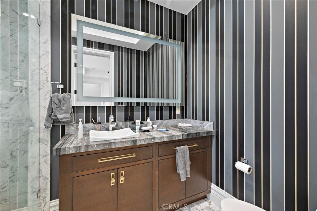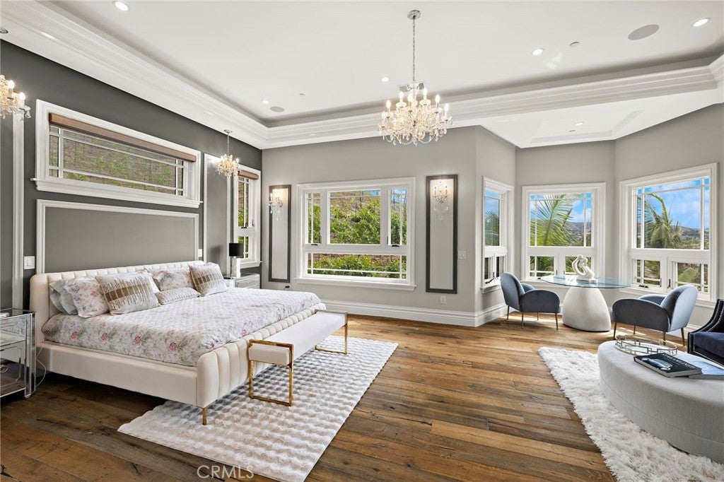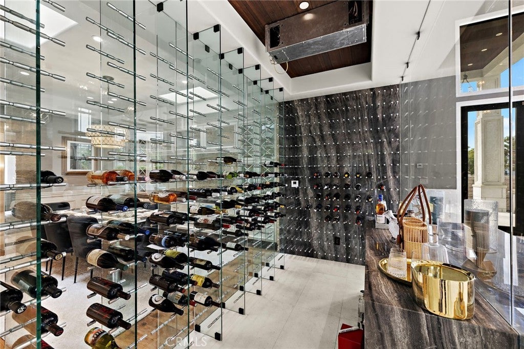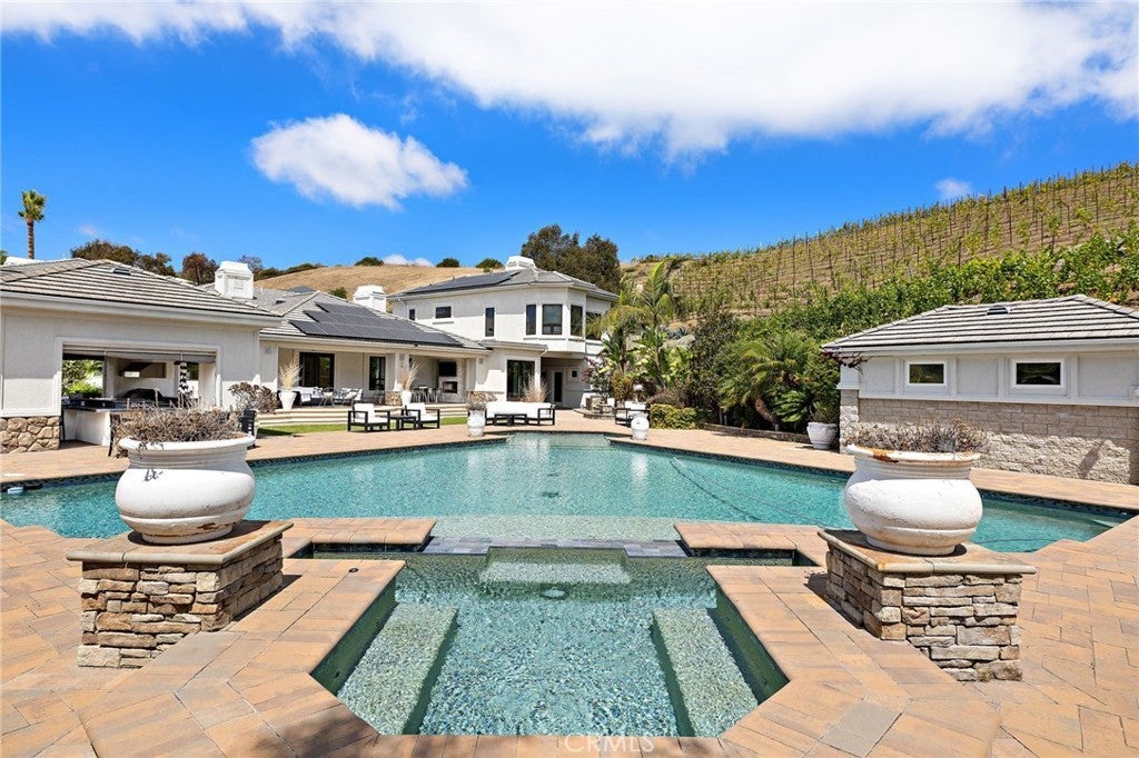 Sophisticated Coastal Estate on 2.65 Acres | 8-Car Garage | Vineyard | Movie Theater ... Offered FULLY FURNISHED!! BIG price reduction! Just bring your suitcase and move into this incredible masterpiece. Nestled on an expansive and premier over-sized lot, this extraordinary custom estate offers unmatched privacy, luxury, and lifestyle across 2.65 acres of refined coastal living. Beyond the double iron gates, a grand circular motor court with a central fountain welcomes you—complete with ample guest parking and space for a recreational vehicle. Car enthusiasts will appreciate the 8-car (2,000 sqft) garage with vaulted ceilings, tons of built-in storage, and its own bathroom! Covered entryway with glass panel doors leads you into 7,200 sqft of downstairs living space which includes a light-filled, two-story decadently-furnished living room, powder room, wine room, home theater fit for a movie mogul, gourmet kitchen with quartz countertops and hidden tv that descends from the ceiling, family room, main-floor master suite (on the East wing). The estate features dual master suites, both upstairs and downstairs, situated at opposite ends of the home for ultimate privacy. The upstairs primary suite spans over 1,500 sq ft and includes a secret 350 sq ft custom closet—a true showstopper for anyone who needs an ultimate closet like no other. The huge main-level master and extra-large walk-in closet provides ideal single-level living or guest accommodations. Three additional large bedrooms offer space and comfort for everyone. A total of 5 bedrooms and 9 bathrooms! The 8-person state-of-the-art theater offers loungers for each viewer, along with a snack bar, and its own bathroom. Outdoors, enjoy a resort-style backyard with a diamond-shaped pool and spa, a covered outdoor kitchen and bar, outdoor shower, and built-in surround sound for seamless indoor/outdoor entertaining. Nestled among flourishing citrus and stone fruit orchards, this exceptional property also features thriving avocado trees, creating a lush and bountiful landscape. A true highlight is the private vineyard, which will yield an impressive 2,000 bottles of wine this year—bringing the charm, flavor, and romance of wine country right to your own backyard. This is more than a home—it’s a lifestyle. This property must be seen to be fully appreciated.