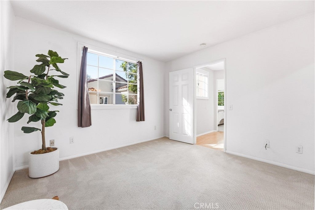 Located in the desirable Chandon community within Marina Hills, this three bedroom, three bathroom home offers a versatile floor plan with one bedroom and full bathroom conveniently located on the main level, ideal for a home office, guest room, or additional living space. The downstairs living area features laminate flooring, a cozy fireplace, and direct access to a private patio, creating an ideal setting for both everyday living and entertaining. The upgraded kitchen includes stainless steel appliances, granite countertops, a gas range, and a breakfast nook, while tile flooring enhances the entry, hallway, downstairs bathroom, and laundry area. Upstairs, the home features two spacious ensuite bedrooms, each with its own bathroom. Additional highlights include newer central heating and air conditioning, laundry room, an attached two car garage with ample storage, and nearby guest parking. Residents enjoy access to a wide range of amenities including swimming pools, spas, a clubhouse, playgrounds, tennis courts, biking and hiking trails, and expansive greenbelt areas, all while enjoying the views and lifestyle offered by the Marina Hills community. The home is conveniently located near shops, restaurants, and schools, with a short drive to downtown Laguna Beach, several popular South County beaches, and the Dana Point Harbor. A wonderful opportunity to enjoy coastal living in a well established Laguna Niguel community.