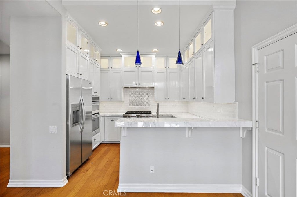Charming coastal cottage in the heart of Corona del Mar, located within the highly desirable 55+ Terraces community. This beautifully upgraded residence offers the perfect blend of privacy, elegance, and walkable beachside living. A private courtyard entry with lush landscaping leads to a dutch-door front entry and an inviting open-concept interior with soaring 10-foot ceilings and walls of windows framing garden views. The remodeled kitchen features Carrera marble countertops, high-gloss white cabinetry, stainless steel appliances, farmhouse sink, and an oversized center island - ideal for both everyday living and entertaining. Hardwood floors flow throughout the great room, dining area, and kitchen creating a warm and timeless coastal aesthetic. The spacious primary suite opens to a private outdoor terrace and showcases a spa-inspired bath with travertine finishes, designer fixtures, walk-in shower, soaking tub and custom closet. The secondary bedroom offers custom built-ins and walk-in closet, while guest bath has been thoughtfully remodeled with ceramic tile, freestanding cottage-style sink and Carrera marble accents. Additional highlights include a dedicated laundry room with sink, multiple outdoor patios, and a two car attached garage with extensive built-in storage and EV charger. Residents of the Terraces enjoy resort-style amenities including sparkling pool, spa, and clubhouse, all within a beautifully maintained community just moments from world-class beaches, charming village shops and fine dining, with immediate access to the Oasis Senior Center's fitness, wellness, and social amenities. A rare opportunity in one of Corona Del Mar's most desirable coastal communities.