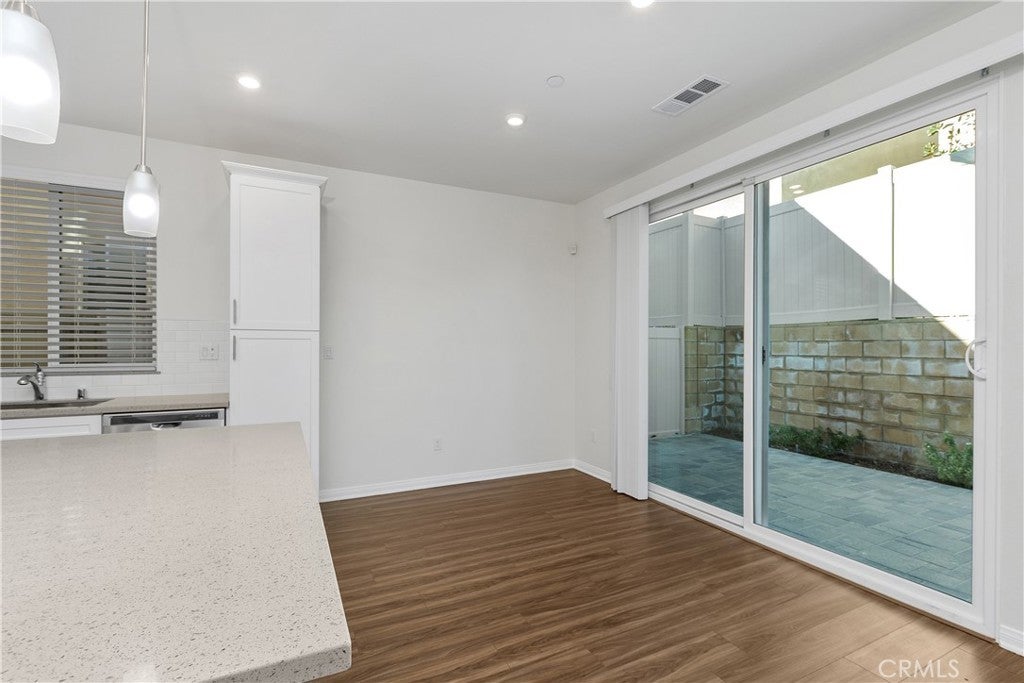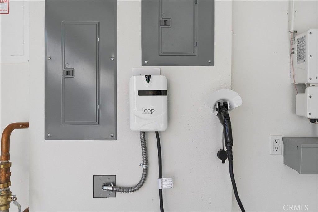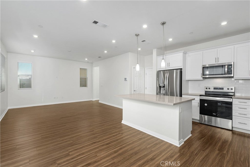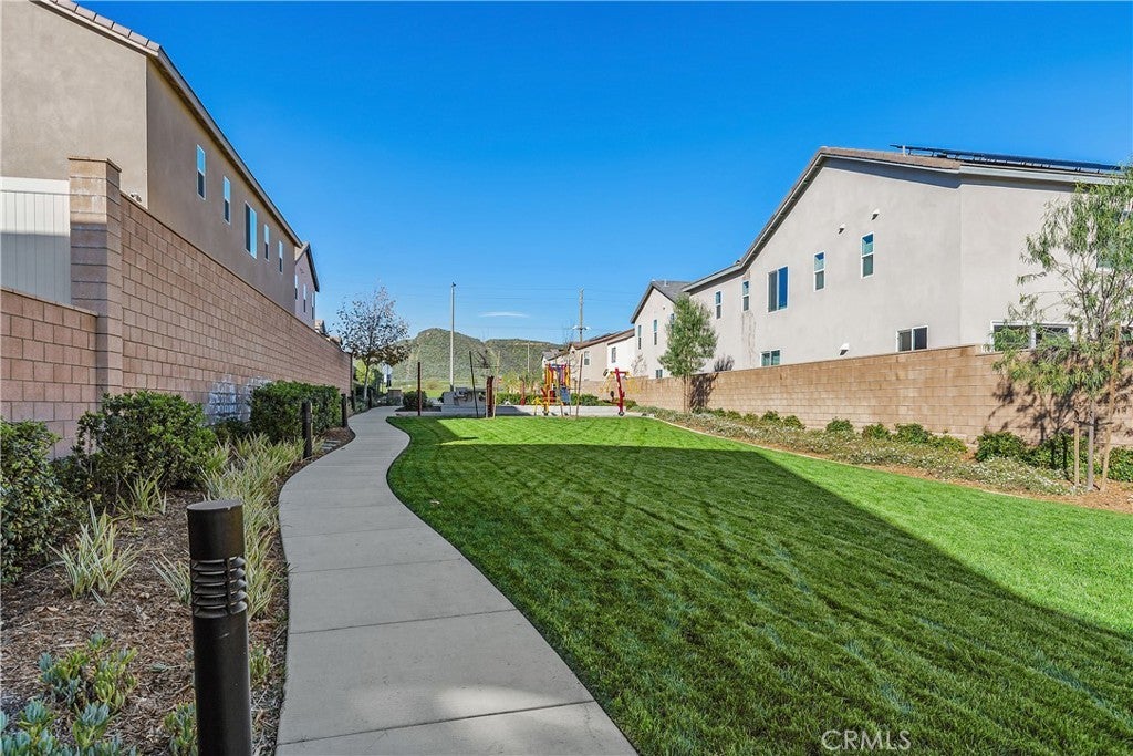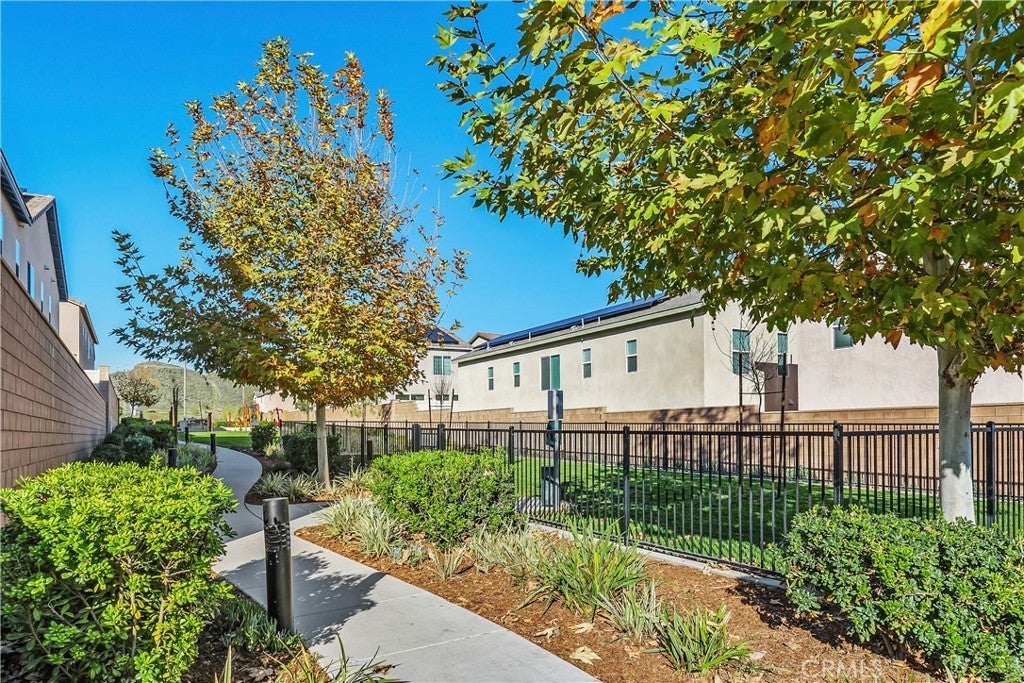 Look no further! This freshly painted, beautiful newer construction home is spacious and bright. Elegant entrance hall brings you to the open concept great room. A bright white kitchen comes furnished with stainless steel appliances. Dine at the breakfast bar or more formally in the spacious dining space off the kitchen and adjacent to the main living area. The backyard is located on the north side of the property. Keeping it shaded most of the day. It features beautiful pavers and the space is perfect for al fresco dining and enjoying the coveted California outdoor lifestyle. All three bedrooms are upstairs. The primary bedroom has an en suite bathroom with private water closet, extra-large walk-in closet, walk-in shower, and soaking bathtub. The two secondary bedrooms share a spacious full bathroom with a shower/tub combo. The laundry room is conveniently located upstairs. Lastly, the home features fully owned solar panels and an EV charger in the spacious two car garage; saving the owner money on monthly utilities. The community is immaculately maintained and features a picnic area, playground, and small dog park. Do not miss this opportunity!