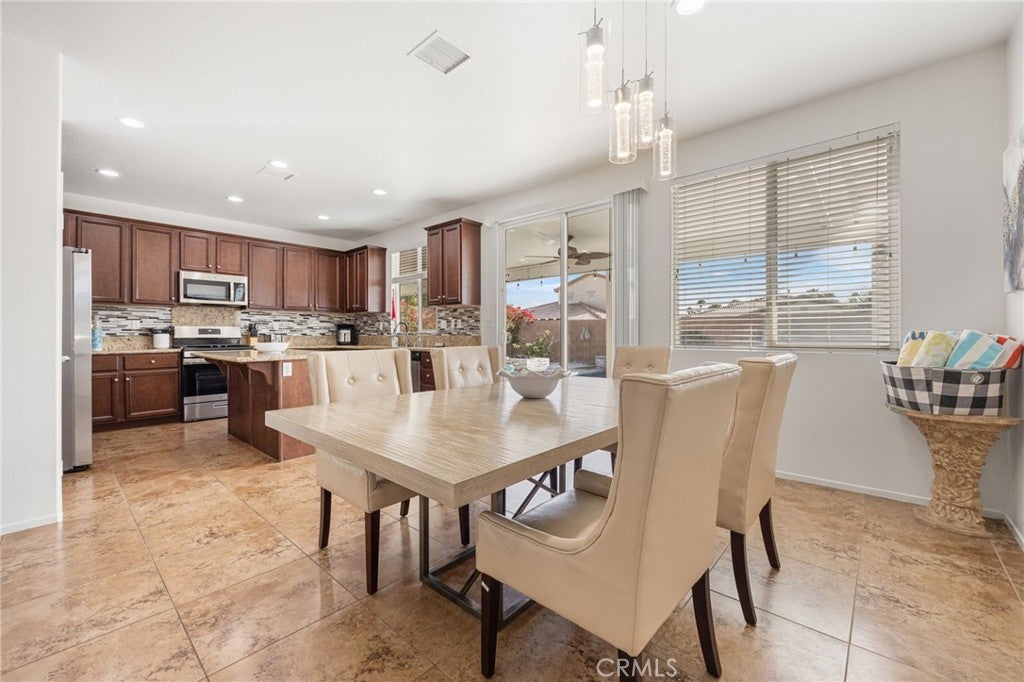 Welcome to The Breeze, an active and successful short-term rental offered fully furnished and located in the gated Terra Lago community of Indio. The property offers gross revenue potential of $100,000+ annually, with estimated cap rates up to 8.6% self-managed or approximately 6.7% with professional management, making it a standout opportunity for investors while remaining well suited as a primary residence or second home. This stylish 4-bedroom, 3-bath home features three bedrooms and two bathrooms on the main level for convenient single-story living, plus a private upstairs bedroom with its own bathroom—ideal for guests, multigenerational living, or an owner’s retreat. Designed for comfort and connection, the open-concept floor plan includes spacious living areas, a modern fully equipped kitchen, central A/C, and smart TVs throughout. The private resort-style backyard is perfect for relaxing or entertaining and features a heated pool, spa, outdoor fire pit, and dining area with scenic mountain views. Located near golf, shopping, dining, casinos, hiking, and major music festivals, this property checks every box for a turnkey income property, vacation home, or full-time residence in one of the Coachella Valley’s most desirable STR zones.