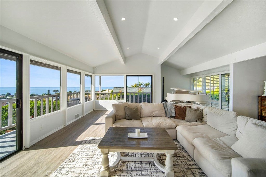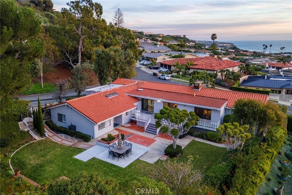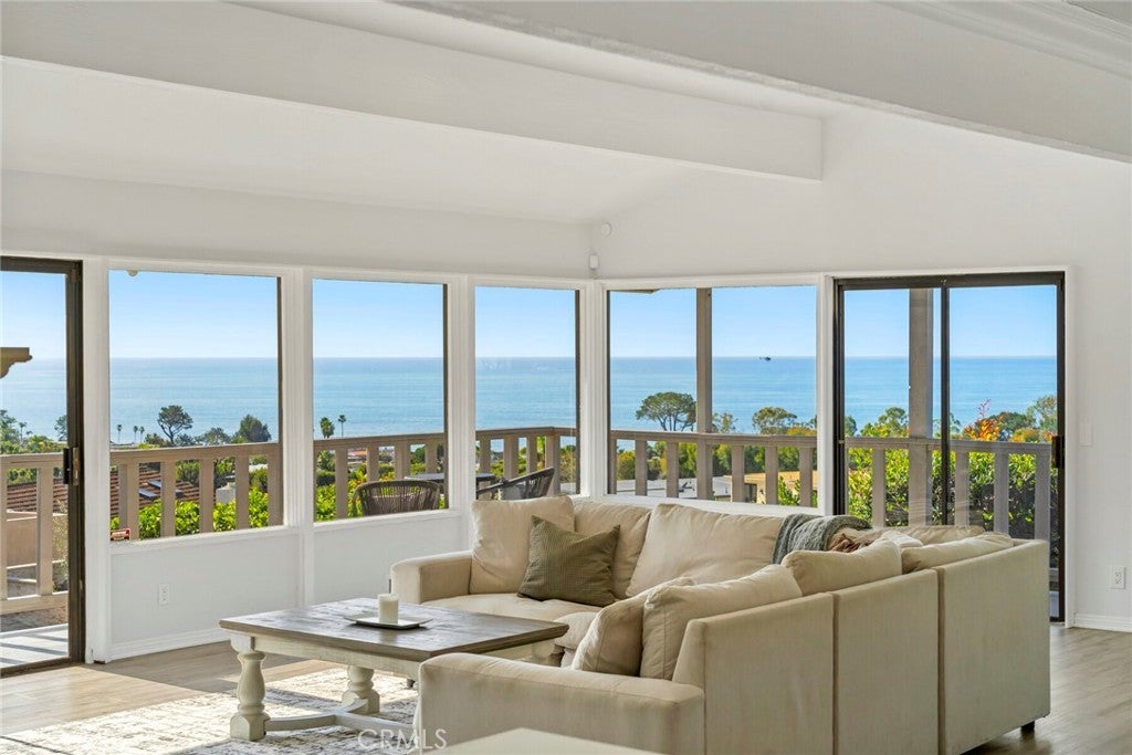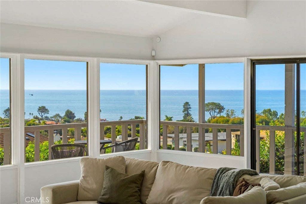 Incredible panoramic view of the ocean and Catalina Island all year round! The truly unique hime features both a 16,000 square foot lot with extra large yard AND breathtaking sit down ocean views from your living room! Flowing open floor plan consists of 4 bedrooms, 2.5 baths with tasteful upgrades throughout. Enjoy your views on the ocean balcony or appreciate the serenity and privacy of your yard on your oversized rear patio off the kitchen and dining area. Quartz countertops, walk-in pantry, double oven, Wolf gas range, Bosch dishwasher and kitchen nook. Generous 3 car garage with additional storage. This home truly has it all! Close to beautiful Dana Point beaches, Monarch Beach and Laguna Beach and up the hill from the spectacular Ritz Carlton Hotel and Monarch beach Resorts. Walking distance to works class dining and shopping centers.