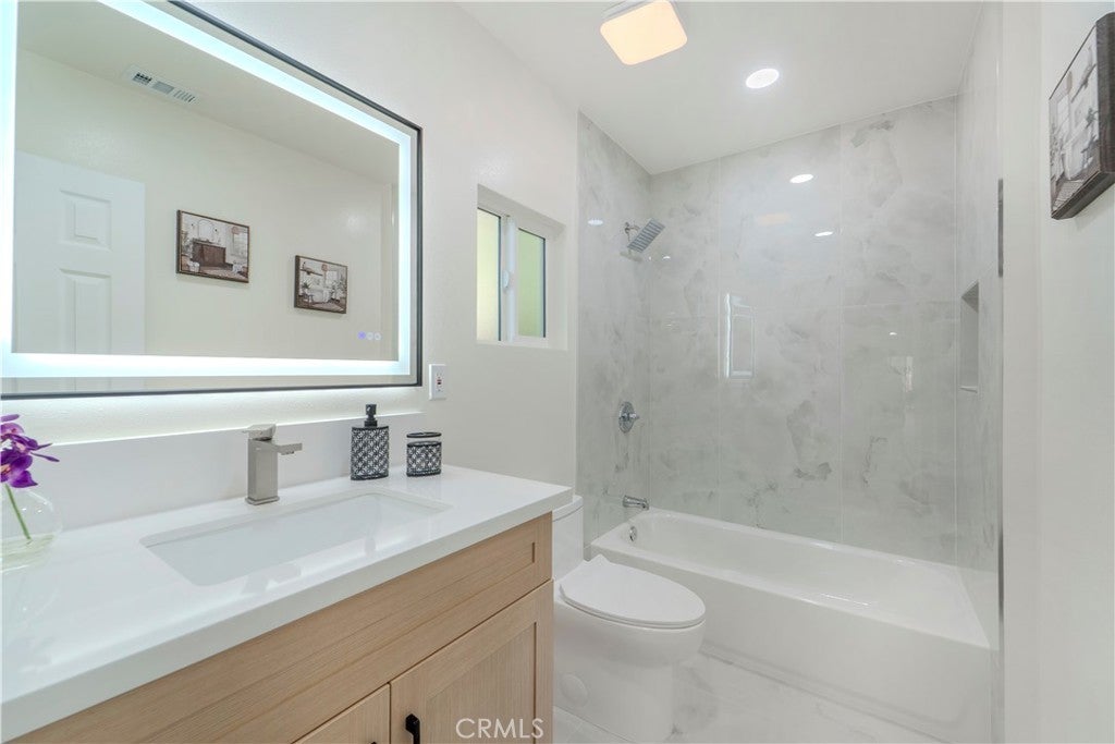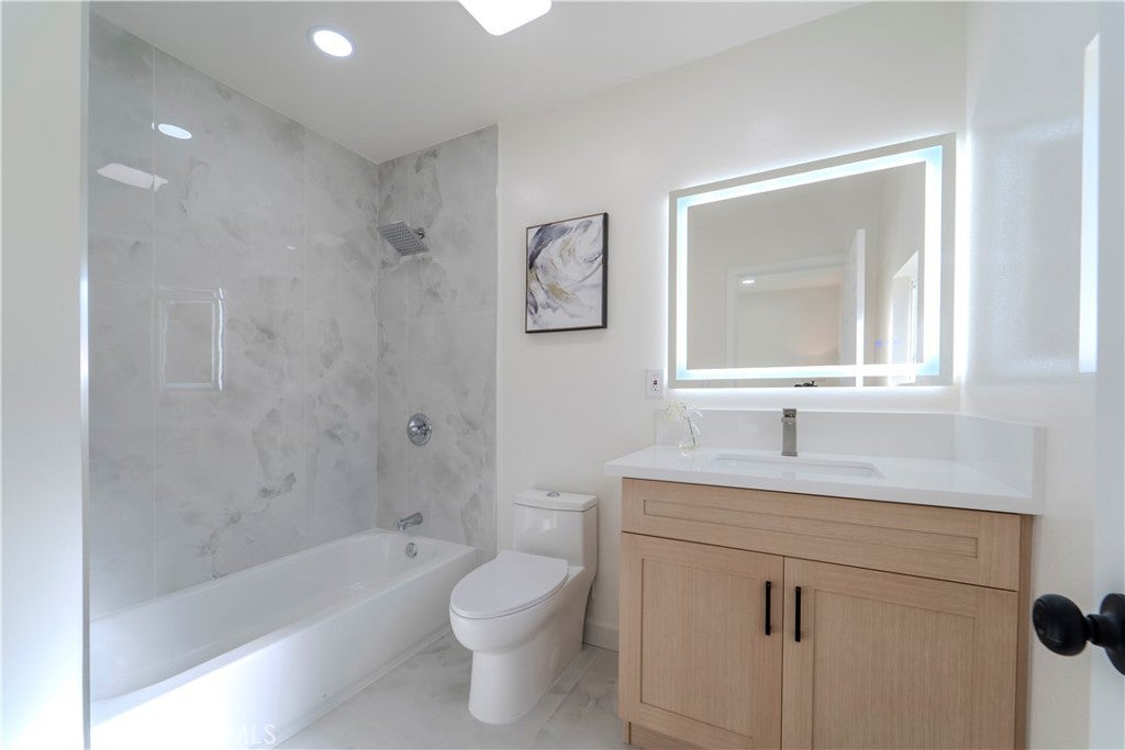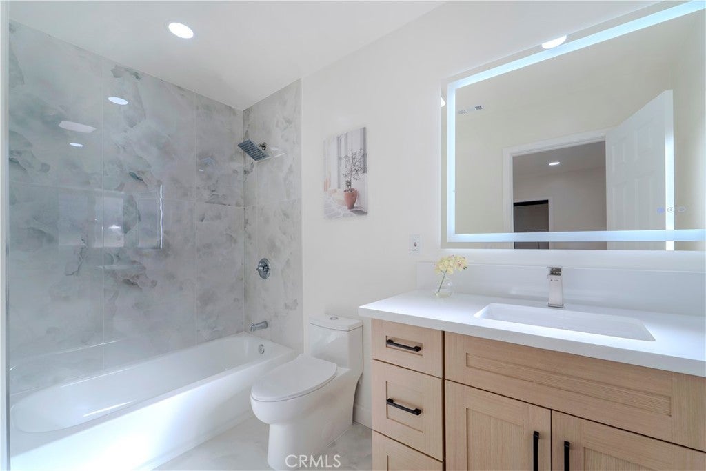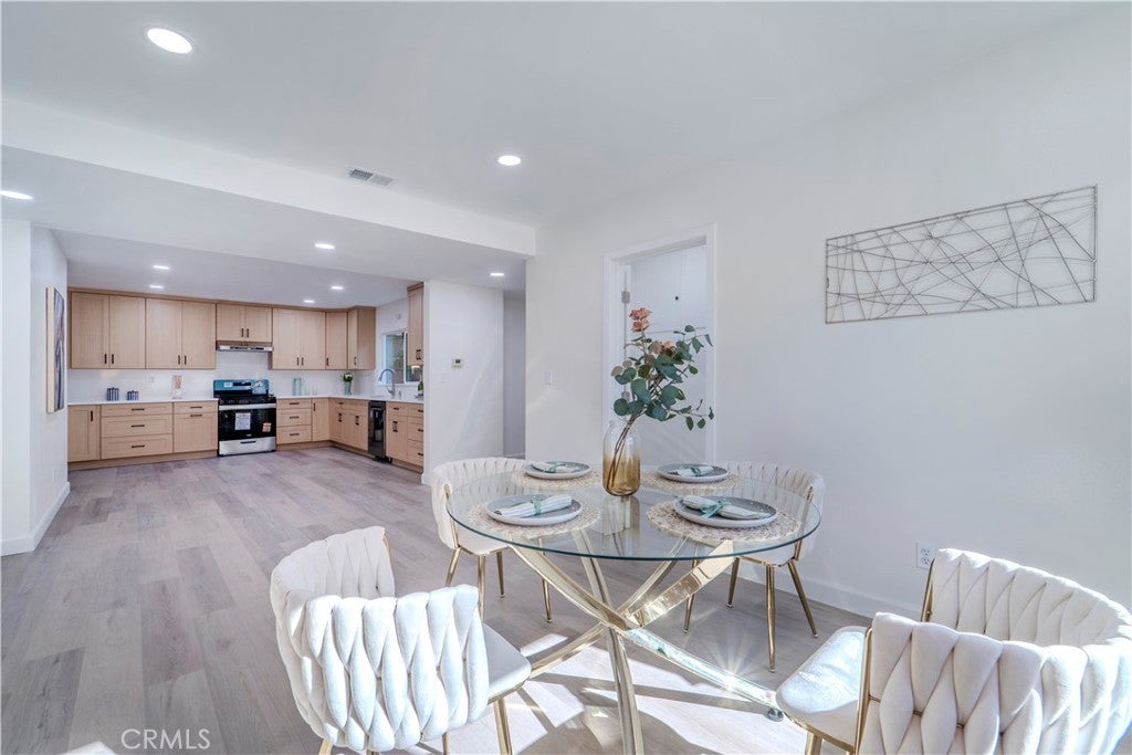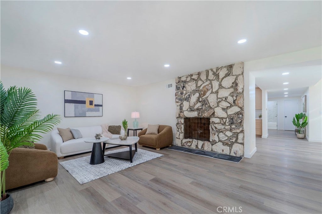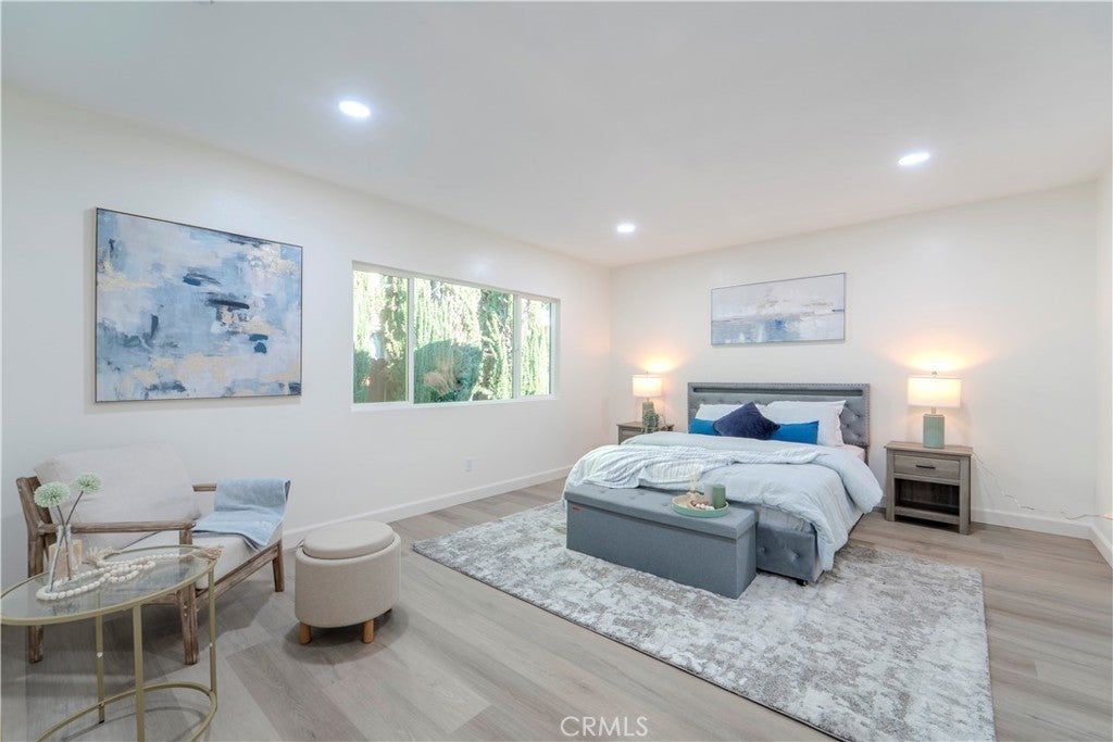 Set on a generous lot in the heart of North Hollywood, this fully reimagined residence delivers a refined, design-forward living experience where modern luxury meets effortless functionality. A thoughtful floor plan unfolds with wide-plank flooring, recessed lighting, and an abundance of natural light that enhances the home’s spacious, open feel. The great room anchors the interior with a statement fireplace and seamless flow into the dining area, creating an inviting setting equally suited for elevated entertaining or relaxed everyday living. At the center of the home, the newly designed kitchen showcases fully customized cabinetry, sleek new countertops, and high-end finishes that balance form and function with understated sophistication. Every detail has been carefully curated, from the remodeled bathrooms featuring custom tile work and spa-inspired appointments to the oversized walk-in closets and extensive storage solutions found throughout the home. A dedicated laundry room adds convenience without sacrificing style, while new interior doors, windows, and a sliding glass door elevate both aesthetics and efficiency. Recent upgrades include a new roof, newer AC condenser, central heating and air conditioning, and a fully finished attached garage—bringing peace of mind alongside polish. Outdoors, the expansive grassy yard and covered patio extend the living space, offering a versatile backdrop for entertaining, recreation, or quiet moments of retreat. The scale of the lot provides a sense of privacy and possibility rarely found, all within close proximity to dining, shopping, fitness, and entertainment destinations. This is a turnkey offering defined by craftsmanship, comfort, and contemporary appeal—an exceptional opportunity to own a truly elevated North Hollywood residence.