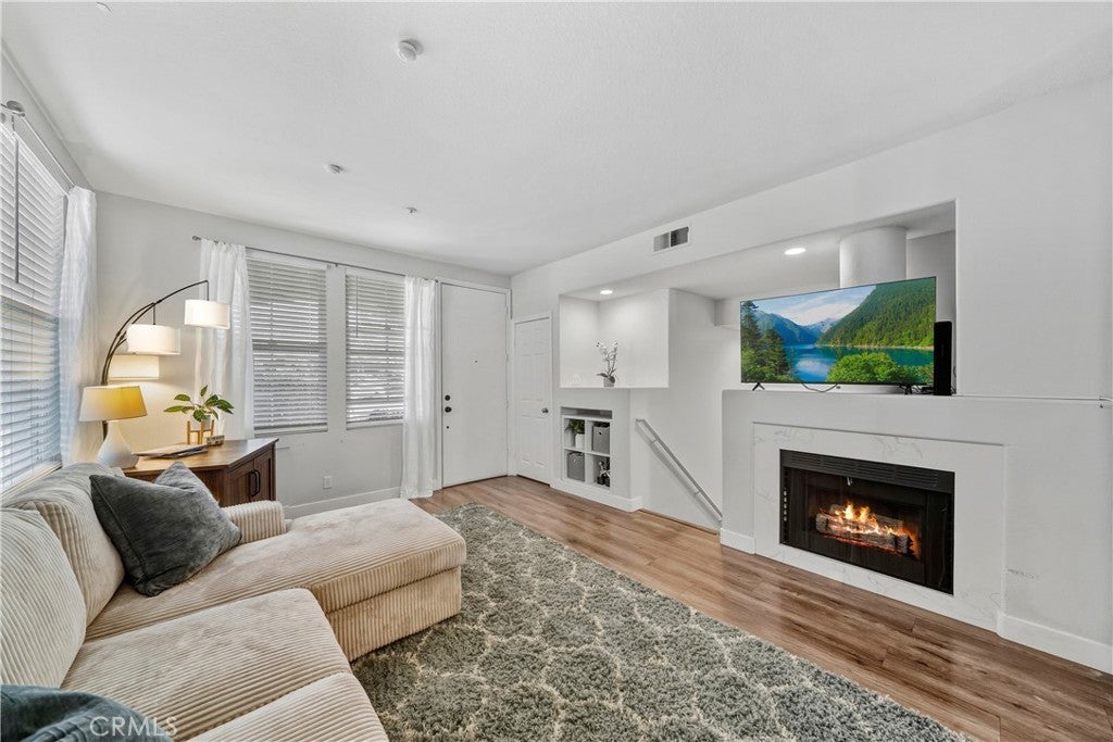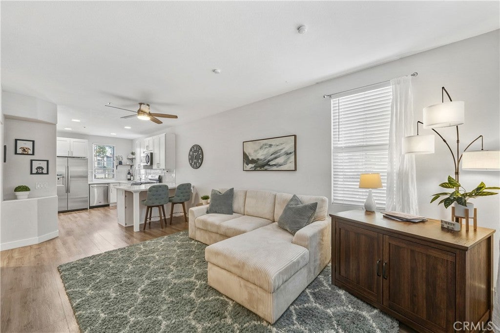 Welcome to this beautifully remodeled corner-unit condo in the sought-after Corte Melina community of Rancho Santa Margarita. This 1 bedroom, 1 bathroom home with attached garage offers privacy, style, and an unbeatable walkable location. Enjoy a cozy covered front porch and a thoughtfully updated interior featuring new flooring, a fully remodeled kitchen and bathroom, and a brand-new HVAC system. The open living space includes a fireplace, interior full-size laundry, ceiling fans, mirrored wardrobe doors, and custom closet cabinetry. The primary bedroom opens to a private balcony. Just steps from restaurants, shops, Central Park, and RSM Lake, this home delivers true walkability paired with resort-style living. Residents enjoy access to Rancho Santa Margarita Lake and Beach Club, four community pools, 13 parks and playgrounds, sports courts, scenic hiking and biking trails, and year-round community events. The community also features a resort-style pool, spa, gym, and designated dog area. Located only a few blocks from O’Neill Regional Park, nearby schools, and with easy access to the 241 Foothill Transportation Corridor, this home offers the perfect balance of convenience, comfort, and lifestyle.