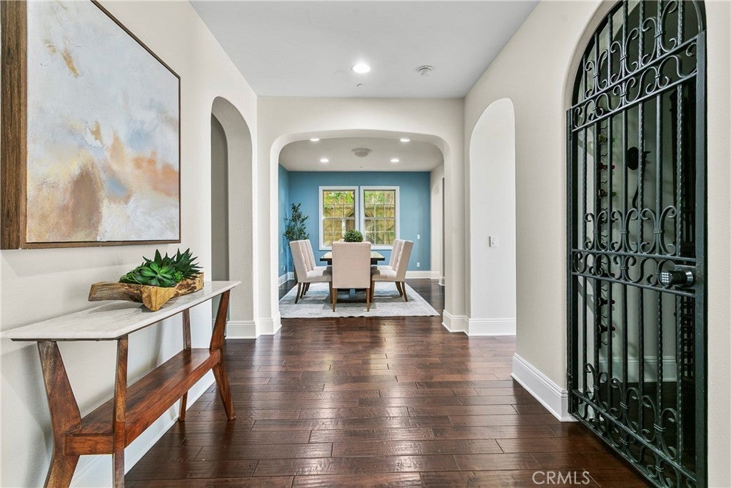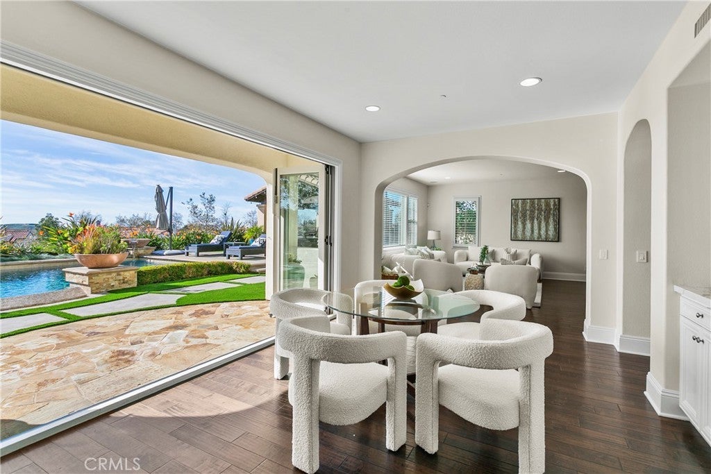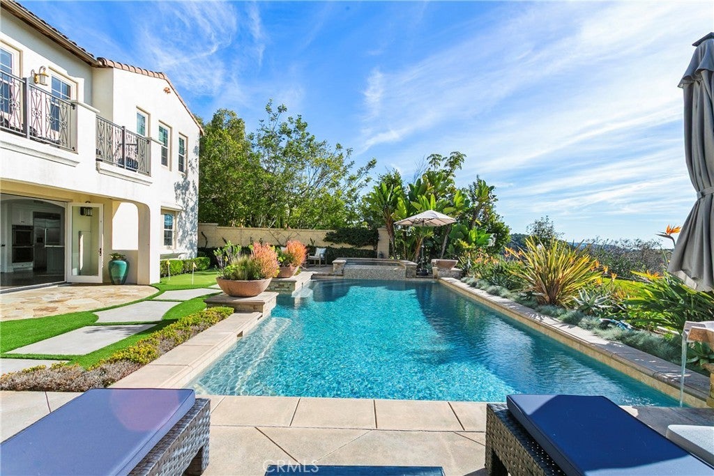 Welcome to Lucia Altura, the most exclusive enclave in all of Talega. Set behind gates, on a quarter-acre lot, this exceptional estate offers panoramic ocean, city lights, and sunset views. A private entry courtyard with fireplace welcomes you onto the property, and provides the perfect spot for cool, coastal evenings. Across the flagstone setting, the grand entrance hall sets the stage for an elegant layout with volumes of space and natural light, and a scale that works for small gatherings or large soirees. Hardwood flooring flows throughout most of the residence, connecting elegant formal living and dining spaces, with inviting family areas designed for everyday comfort. The main level includes a separate bedroom suite, library/study, dedicated wine room, and thoughtfully designed transition spaces with classic architectural elements. Upstairs, the five-star primary suite is the ultimate retreat. Set in its own wing, the private space offers a spacious bedroom, sitting area with ocean-view balcony, spa-inspired bath with deep soaking tub and separate shower, plus an oversized walk-in closet. The upper gallery and loft area offer an excellent transition to the additional bedroom suites, and a versatile bonus room which is currently used as a home theater. This residence is designed for seamless indoor-outdoor living and the rear grounds serve as a true extension of the home. An expansive outdoor pavilion anchors the space, complete with kitchen, bar, and big-screen TV, and creates the ultimate setting for year-round gatherings, game days, and glorious ocean-view sunsets. A resort-style pool and spa with classic water features, multiple sunning and entertaining areas and stone walkways complete the outdoor environment...PLUS, an adjacent Casita offers added flexibility for guests or extended stays. Only twenty estates grace the Lucia Altura community and opportunities like this are exceptional. This residence truly represents the best of OC coastal living and best of the Talega lifestyle
