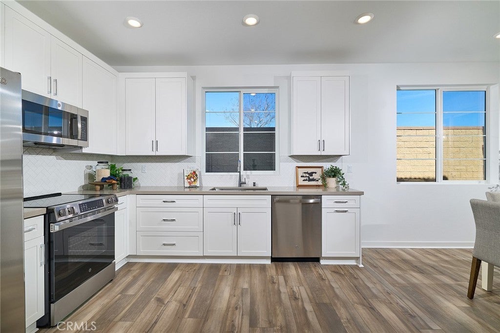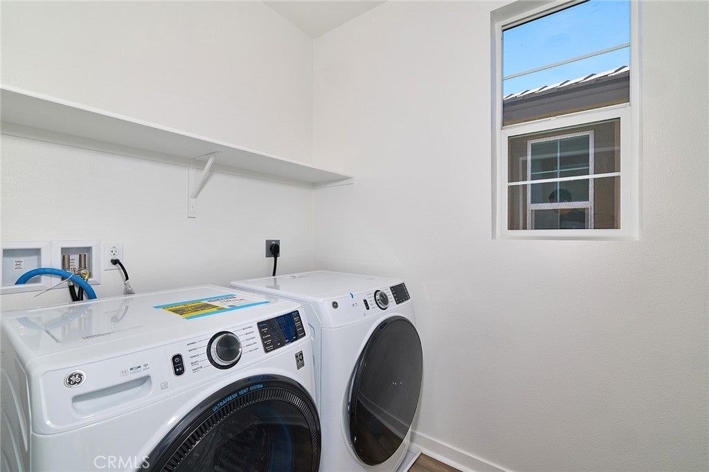 MOVE IN READY, TURNKEY detached new construction home with outdoor space. This two-story Risewell Homes Plan 1 showcases a flowing Great Room/Kitchen/Dining area, leading out to a private yard that's a blank canvas for your landscaping ideas. Upstairs offers a Primary Suite opposite sizeable Bedrooms, a secondary bath, and walk-in Laundry. Unique 2 car split garage with individual driveways for extra curb appeal. Pricing includes enhanced designer upgrade package, washer, dryer, and refrigerator, LVP/tile flooring, Quartz counters. Our Marigold community is located in the newer gated Lewis Co. community The Arboretum, with mountains serving as a dramatic backdrop and pools, spa, clubhouse, fitness center, pickleball courts, dog park, and lounge areas available. Proximity to I-15, 10 and 210 commuter routes and a variety of shopping/dining/entertainment options. Seller concessions available.