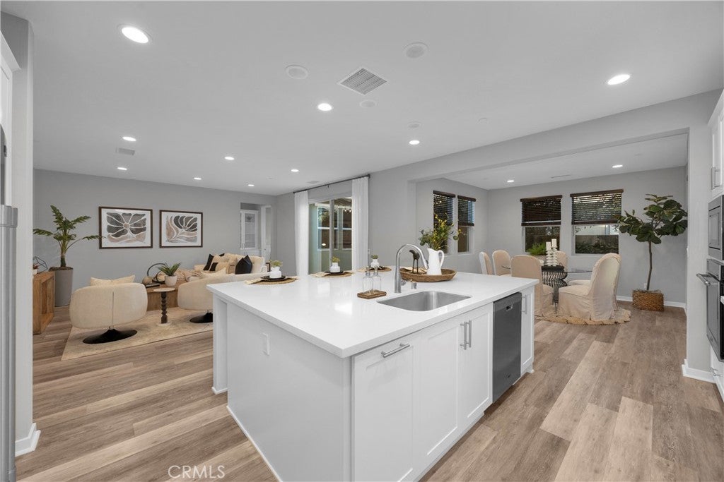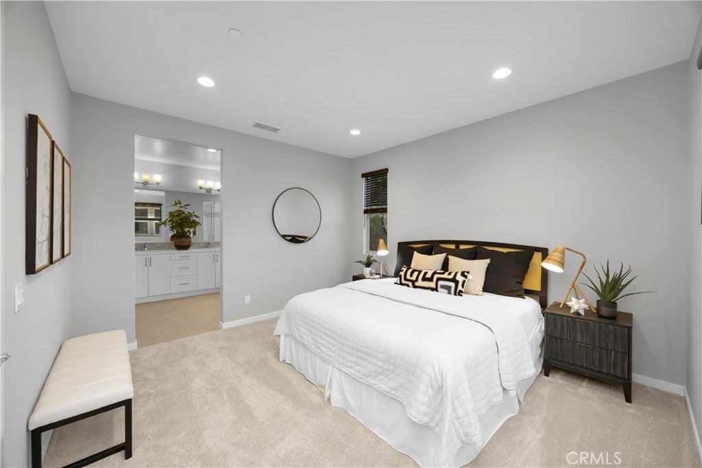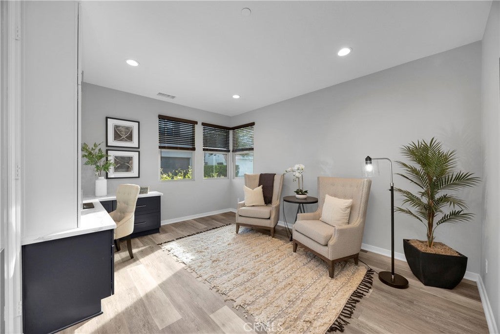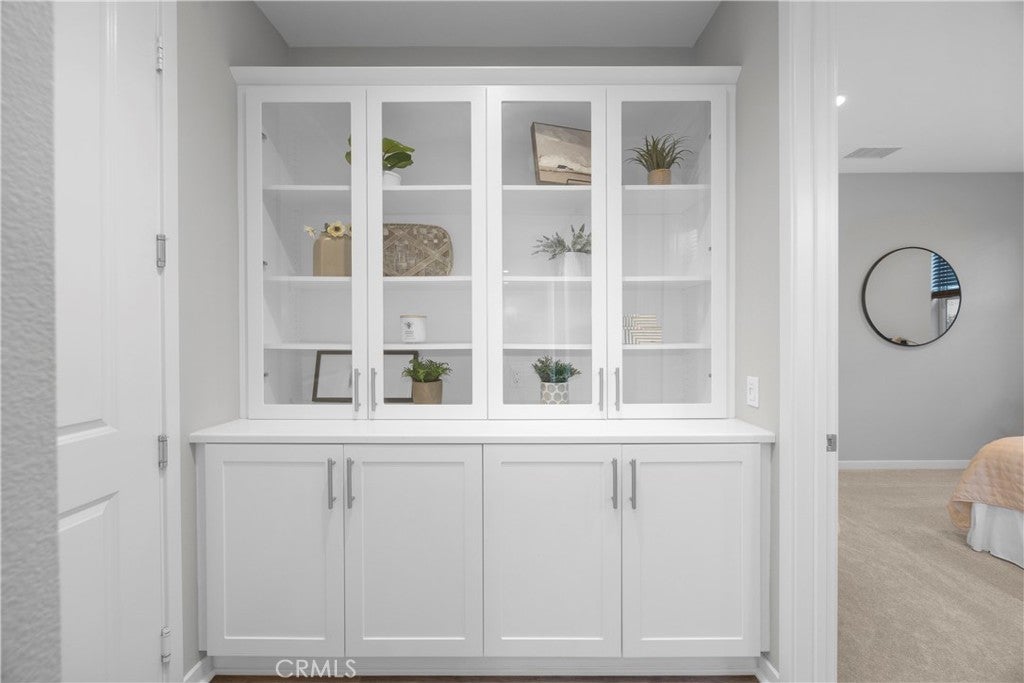 Welcome to 31 Alienta Lane, a rare single-story home located in the highly desirable Reverie development of Esencia within Rancho Mission Viejo’s all-ages Northwalk neighborhood. Freshly painted and featuring brand-new carpet, this thoughtfully designed residence offers 2 bedrooms, 2 bathrooms with double vanity sinks, plus a den/flex space with a built-in desk and upgraded French doors that can easily be converted into a third bedroom and additional bathroom. The open-concept layout showcases an oversized kitchen island with quartz countertops, extra storage cabinets beneath the island, and Maytag appliances, including a 5-burner gas cooktop. A built-in curio hutch cabinet thoughtfully connects the main living space to the primary bedroom, adding both charm and functionality. The spacious living and dining areas flow seamlessly, creating an ideal space for entertaining and everyday living. Additional upgrades include a laundry room with a sink and upper cabinetry for added storage and convenience. The garage is exceptionally well-appointed, featuring epoxy flooring, a custom storage system with overhead ceiling storage, and slat wall panels with hooks and shelving. Ideally located near some of Rancho Mission Viejo’s most popular amenities, this home is just moments from The North Plunge Pool, tennis and pickleball courts, The Garage Clubhouse, The Hangout, zipline, and The Backyard with the beloved “Spider-Man” Park. A rare opportunity to own a move-in-ready, single-level home in one of Esencia’s most sought-after communities.