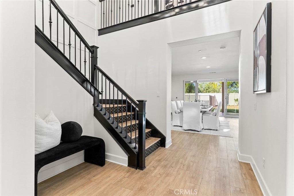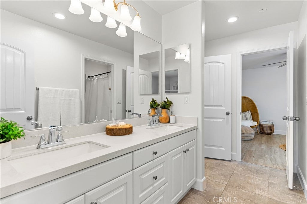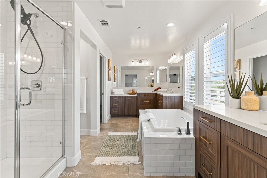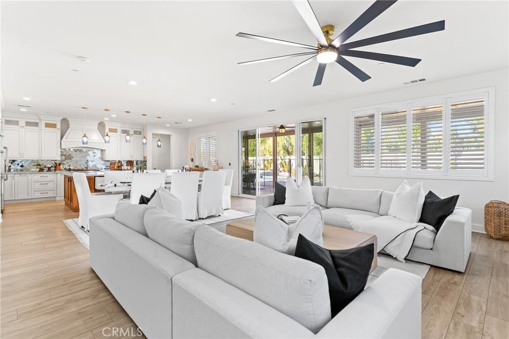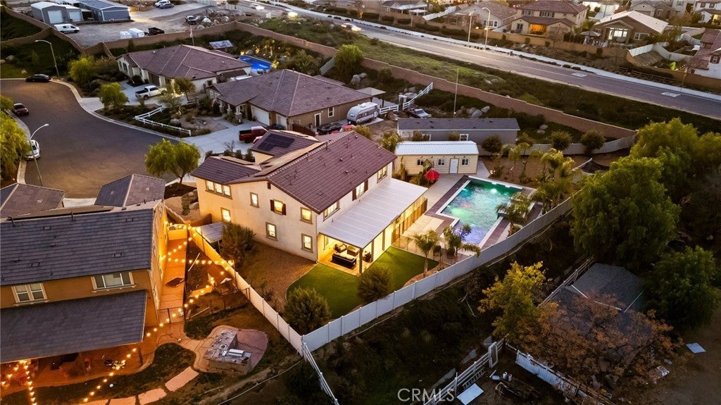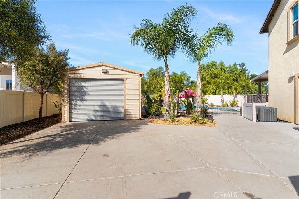 Welcome to 30381 Canyon Point Circle, a beautifully updated residence located in the prestigious Boulder Estates community of Menifee, offering no HOA, generous lot features, and a true indoor-outdoor lifestyle. This 5-bedroom, 4.5-bath, 3,653 sq ft home impresses from the moment you enter with soaring ceilings, an open balcony overlook, and a tastefully designed staircase that sets the tone for the rest of the home. The interior has been freshly repainted, elevating the already bright, move-in-ready feel throughout. The main level features a full downstairs bedroom suite with a walk-in closet and private en-suite bathroom, ideal for guests or multigenerational living, along with a convenient powder room. The heart of the home is the expansive open-concept great room, seamlessly integrating the living room, dining area, and kitchen. Built-ins anchor the living space, while dual sliding glass doors open to the backyard and create effortless flow for entertaining. The chef’s kitchen is thoughtfully designed with a large center island and bar seating, stainless steel built-in appliances including a cabinet-flush refrigerator, six-burner gas range, abundant cabinetry, recessed and pendant lighting, and a large walk-in pantry that provides exceptional storage. Upstairs, a spacious flex space functions perfectly as a family room, lounge, or media area. The primary suite is a true retreat, filled with natural light and featuring dual vanities, a Roman soaking tub, a separate walk-in shower, water closet, and an expansive walk-in closet with remarkable storage capacity. Three additional bedrooms complete the upper level, each with direct bathroom access, including two secondary bedrooms connected by a Jack-and-Jill bath. A full upstairs laundry room with sink, storage cabinetry, and open shelving adds everyday convenience. The backyard is a true private oasis, highlighted by a resort-style pool and spa with Pebble Tech finish, lighting, water, and wave features. An additional detached shed currently used as a workspace offers flexibility as a home gym, studio, or man cave. Additional highlights include solar, extensive built-in storage throughout, a three-car tandem garage, and RV parking. Located in a quiet, well-established enclave with easy access to shopping, dining, parks, and commuter routes, this home offers space, flexibility, and the idyllic Southern California lifestyle without compromise.