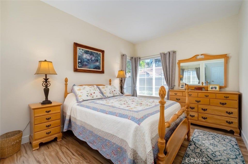This beautiful single-level home is located within the highly desirable 55+ community of Palmia. Light and bright, this corner end-unit offers a prime location and has been tastefully upgraded throughout. The home features updated flooring and baseboards, recessed lighting, and a stylish updated fireplace that adds warmth and charm to the living space. The kitchen showcases crisp white cabinetry with soft-close doors, updated countertops, and stainless-steel appliances, creating a clean and inviting space for everyday living and entertaining. Both bathrooms have been beautifully updated with new vanities. The spacious primary suite includes two large closets and an en-suite bathroom with dual sinks and shower with glass enclosure. A separate indoor laundry room with sink adds everyday convenience. Enjoy outdoor living on the large private patio, thoughtfully designed with a balanced mix of hardscape and softscape. The two-car garage features and the home has also been fully re-piped for peace of mind. Recessed lighting, soft water, Newer HVAC and Water heater along with remote blinds and ceiling fans are among just a few of the extras. Palmia is a 55+ community like no other, offering resort-style amenities including a clubhouse, swimming pool, jacuzzi, 18-hole putting green, fitness center, pickleball and tennis courts, library, shuffleboard, bocce ball, and more. Homeowners also enjoy membership to Lake Mission Viejo, featuring boating, fishing, beaches, concerts, and picnicking.