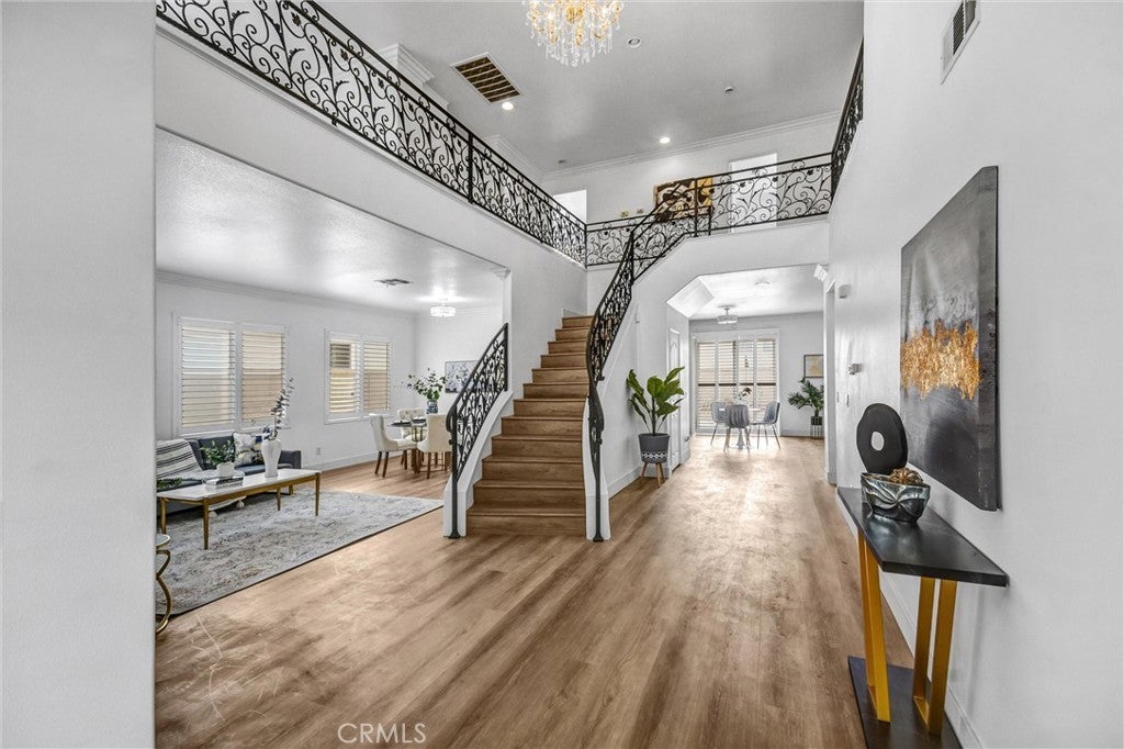 Welcome Home — the One You’ve Been Waiting For Discover this exceptional residence that truly has it all. Perfectly located in a peaceful and picturesque neighborhood, this home combines comfort, style, and convenience—just minutes from top-rated schools, beautiful parks, and popular shopping destinations. From the moment you step inside, you’ll notice the meticulous attention to detail and thoughtful upgrades throughout. The home features premium flooring, stunning new countertops in both the kitchen and bathrooms, brand-new kitchen appliances, and a beautifully redesigned staircase that adds a touch of elegance. Every window, including the backyard door, is dressed with timeless plantation shutters that provide both charm and energy efficiency. The curb appeal is undeniable—manicured hedges and blooming rose bushes create a warm welcome. The backyard is private and easy to maintain, enhanced by mature fruit trees such as lemon, orange, and persimmon—perfect for enjoying California’s sunshine year-round. One of the home’s standout features is the fully paid-off solar system, designed to keep energy costs low in every season—so you can stay cool in the summer and cozy in the winter without the high utility bills. The layout is ideal for multigenerational living or larger families, offering flexibility for every lifestyle. Just off the entryway, you’ll find a convenient bedroom and full bathroom—great for guests, an office, or an in-law suite. The open-concept main level showcases soaring ceilings, a formal living area, a welcoming family room with fireplace, and a spacious kitchen with a large island and abundant storage. Upstairs, a generous loft offers the perfect spot for a media room, play area, or home office. Two bedrooms share a Jack-and-Jill bathroom, while another bedroom sits privately in the west corner. The luxurious primary suite feels like a private retreat—complete with a soaking tub, separate shower, private toilet area, and a large walk-in closet. This home blends functionality, beauty, and comfort in every detail. Come experience it in person—you’ll instantly know you’ve found the one.
