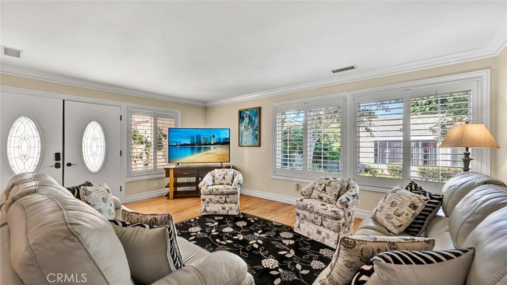 Set within a quiet, greenbelt setting, this Villa Nova model offers 2 bedrooms, 2 baths, and 1,074 square feet of comfortable single level living in the Laguna Woods community. Surrounded by mature greenery and positioned for privacy, the home feels calm and tucked away while still offering an open and welcoming interior. The living and dining areas connect seamlessly to the kitchen, creating a bright, easy flowing layout well suited for everyday living or casual gatherings. The primary bedroom features an en suite bath with a walk in shower, and the second bedroom provides flexible space for guests or a home office. A covered private patio extends the living space outdoors and offers a peaceful place to enjoy the surrounding greenery. Residents have access to an extensive selection of amenities including golf courses, fitness centers, multiple pools, a restaurant and lounge, numerous clubs, and an equestrian center. With close proximity to freeways, shopping, dining, and entertainment, the home combines a tranquil setting with everyday convenience!
