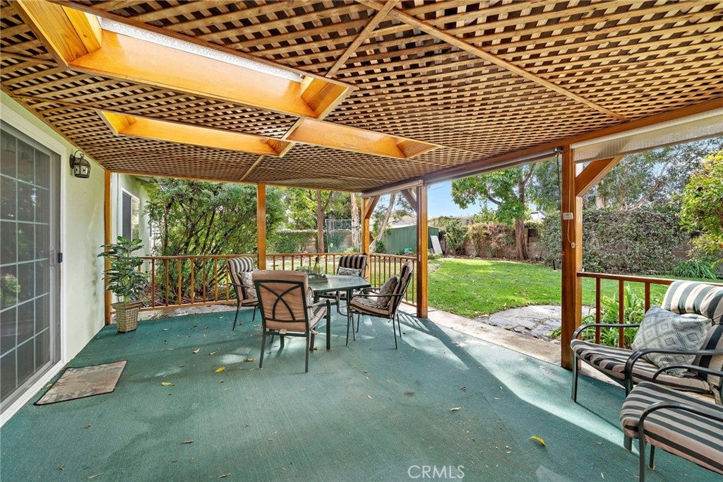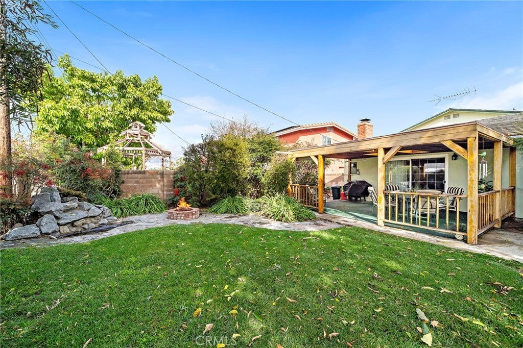 Truly exceptional 5-bedroom Westmont home that has been meticulously maintained and beautifully upgraded, offering 1,896 square feet of versatile living space. The stunning curb appeal feels like a private park, showcasing lush lawn, brick-accented walkways, brick pilasters with lighting, manicured landscaping, and a charming white picket fence that opens to your own gated RV parking with sewer hook-up. Step through the welcoming foyer into the elegant living room featuring crown molding, wood laminate flooring, wainscoting, and a brick fireplace with custom surround and mantel. The home is filled with natural light from dual-pane French-style windows and sliders, complemented by custom blinds throughout. The upgraded kitchen boasts granite countertops, a gas cooktop, stainless steel sink, oven, dishwasher, and an expansive breakfast bar that opens to a spacious dining room with ceiling fan and sliding door access to the side yard—perfect for seamless indoor-outdoor living. Four bedrooms are located downstairs, including the primary suite. Both bathrooms have been tastefully remodeled with tile flooring, designer tile surrounds, and etched glass enclosures. Upstairs you’ll find an oversized bonus suite complete with a living area, bedroom, walk-in closet, and custom built-ins—ideal for multigenerational living, extended guests, or visiting grandchildren. The backyard is every bit as impressive as the front and offers your own tranquil, park-like oasis. Enjoy a large custom-covered patio with skylights and decorative lattice roof, mature trees swaying in the ocean breeze, and a lush lawn perfect for play or relaxation. A flagstone pathway leads to a fire ring and waterfall fountain, while the opposite end of the yard features a golf chip-and-putt practice area and a spacious shed/workshop—all enclosed by block wall fencing for privacy. Located within the top-ranked Ethan Allen Elementary (10), McGarvin Middle (9), and La Quinta High School (9) boundaries, and close to beaches, shopping, dining, entertainment, and easy freeway access. This is more than a home — it’s a lifestyle of comfort, flexibility, and outdoor enjoyment in one of the area’s most desirable neighborhoods.
