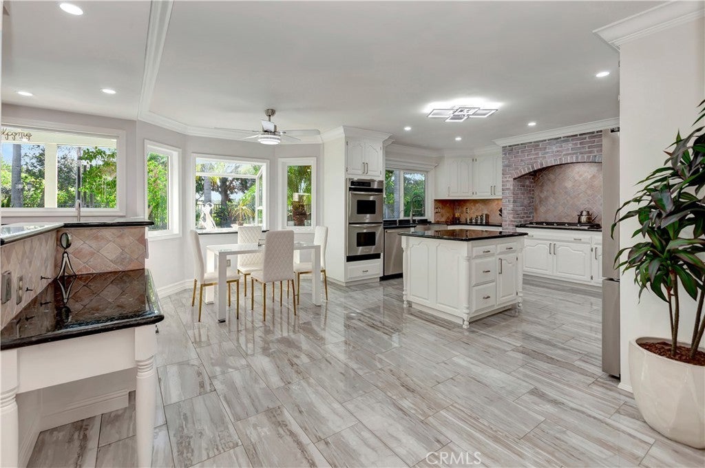 - Interior FeaturesBreakfast Area, Ceiling Fan(s), Cathedral Ceiling(s), Separate/Formal Dining Room, Eat-in Kitchen, Granite Counters, High Ceilings, Open Floorplan, Recessed Lighting, Bedroom on Main Level, Primary Suite, Walk-In Pantry, Walk-In Closet(s), Balcony, Crown Molding, Living Room Deck Attached, Paneling/Wainscoting, Pull Down Attic Stairs, Storage, Wet Bar