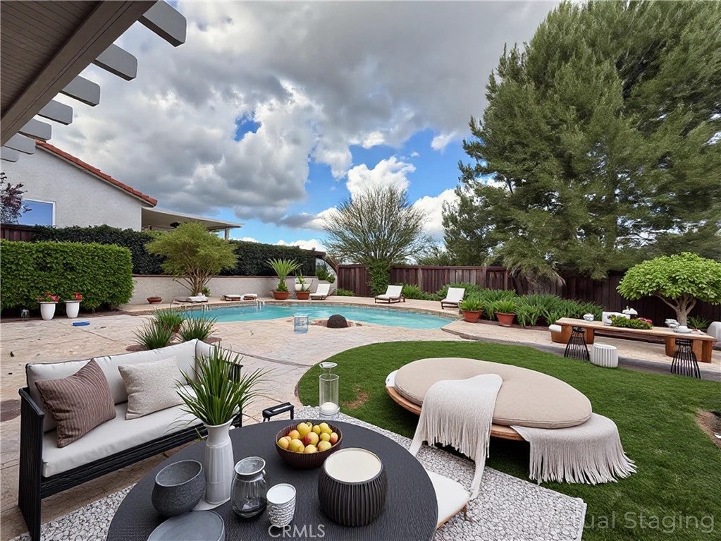 Welcome Home to 35430 Azalea Circle – the Lucky One You’ve Been Waiting For! Nestled on a peaceful cul-de-sac in the heart of Winchester, this stunning Transitional-style residence offers the perfect blend of comfort, elegance, and modern living. Step through the double-door entry into soaring vaulted ceilings that grace the formal living and dining rooms. Engineered hardwood floors, plantation shutters, and abundant natural light create a warm and welcoming atmosphere throughout. This spacious 4-bedroom, 3-bathroom home of thoughtfully designed living space. The luxurious primary suite includes a private retreat—ideal for a home office, gym, or library—along with a spa-like bath featuring a walk-in shower, separate soaking tub, dual sinks, and a generous walk-in closet. Down the hall are three additional bedrooms, a full bath, and a tech nook perfect for study or workspace. The open-concept kitchen is a true centerpiece, showcasing elegant white shaker cabinets, gleaming granite countertops, stainless steel appliances, a barn sink, recessed lighting, and a sliding door that opens to the backyard. The kitchen flows seamlessly into the large family room with a cozy fireplace and granite mantel—perfect for everyday living and entertaining. Step outside to your own private oasis! The expansive backyard is designed for year-round enjoyment with a sparkling pool and spa, fire pit, paved seating area, and plenty of room for BBQs and gatherings. Additional highlights include solar panels, a whole house fan, dual AC units, and ceiling fans throughout. Located with LOW taxes and HOA, and zoned for the highly desirable Murrieta School District, this home is just minutes from gyms, shopping, dining, and scenic walking trails and parks. PURE PERFECTION! Don’t miss this incredible opportunity to own a gorgeous, move-in-ready pool home in one of Winchester’s most sought-after neighborhoods. Some photos have been virtually staged to illustrate the home’s potential.