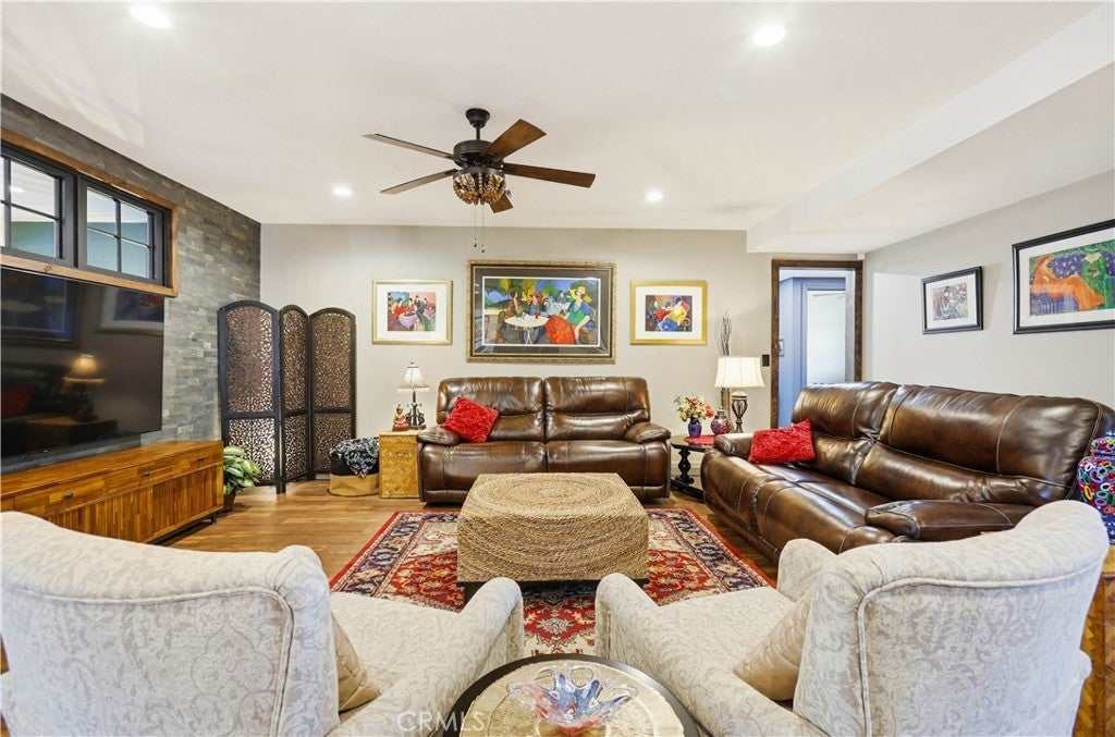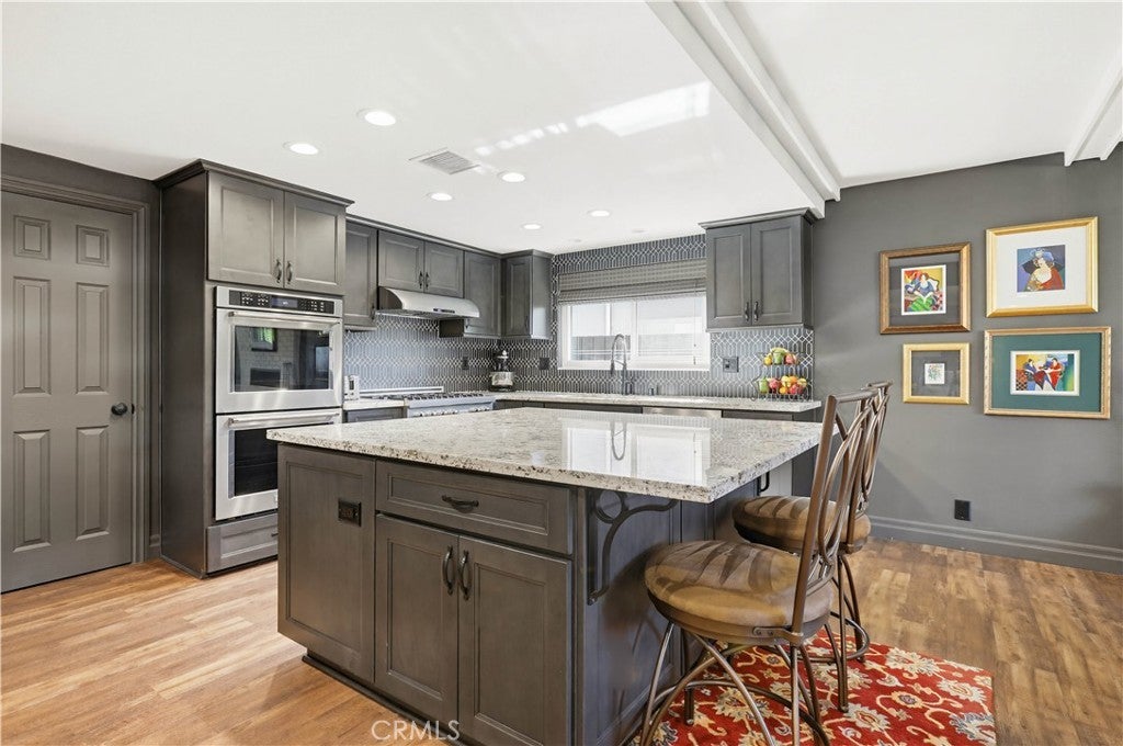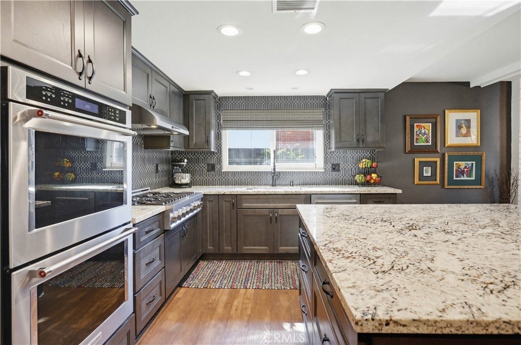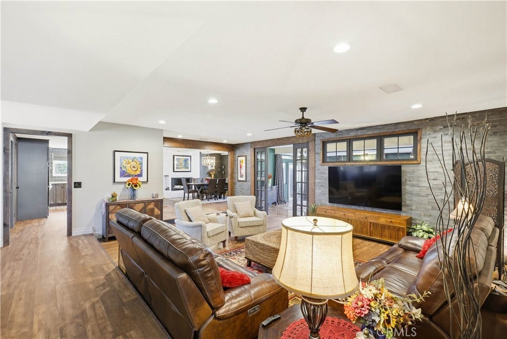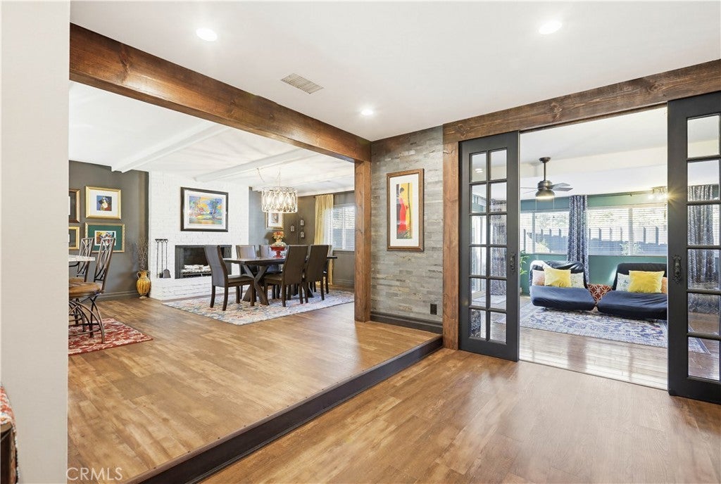 Highly desirable single level home, beautifully updated and improved inside and out, spacious and flexible floor plan, beautifully remodeled kitchen and baths, earthy color palette, and handsome features throughout. Superbly located on a beautiful tree-lined Cul-De-Sac street close to local parks and numerous hiking and biking trails nearby. The vibrant and highly manicured exterior features create a striking first impression. Step through the double door entry and soak in the gorgeous luxury vinyl plank floors and the spacious living room, a perfect space for gatherings with loved ones. Travel through to the expansive redesigned Kitchen and Dining Room with a welcoming brick fireplace, open beam ceilings, and custom lighting, an ideal environment for entertaining friends and family. The elegant, remodeled kitchen is a dream with gorgeous Granite countertops, upgraded cabinetry, double ovens, custom fully tiled backsplash, high-end stainless-steel appliances including professional grade gas range and double ovens, and a huge center kitchen island with breakfast bar. You will adore the expansive bonus multipurpose sunroom with hardwood flooring and filled with an abundance of natural light with sliders opening to the backyard spaces, perfect for rec room, family room, home office, teen hangout, and more! The primary suite is a private retreat with two closets and a beautifully updated primary bath with elegant Quartz-topped vanity and updated fixtures and faucets, framed vanity mirror, and step in shower. Two secondary bedrooms and a gorgeous guest bathroom mirroring the improvements in the primary bathroom which include a Quartz topped dual vanity, framed vanity mirrors, and elegant faucets and fixtures complete this well-designed floor plan. Additional improvements include newer HVAC and duct work, newer water heater, newer electrical panel, new fencing and gutters, new sunroom roof, and main sewer line improved. The fully fenced, private, outdoor spaces with mature trees and grassy lawns create a serene setting. Direct access two car garage with built-in storage, new garage door, and a large attic space for extra storage. Located in the desirable Beechwood School boundaries & FJUHSD! Excellent Fullerton location close to shopping, restaurants, local playing fields, hiking and biking, Coyote Hills Preserve, Hillcrest Park, Pinewood Stairs, Golfing, CSUF, St. Jude, Fullerton College, Fullerton Sports Complex, Fullerton Loop, 57 & 91 FWYS, & more!