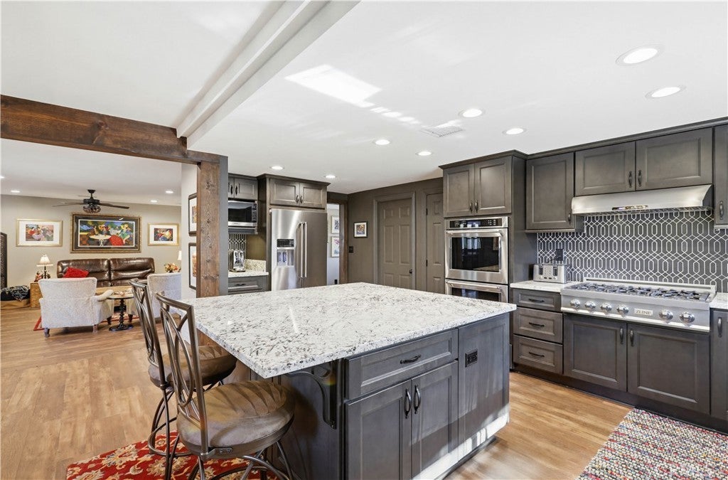 - Interior FeaturesBeamed Ceilings, Breakfast Bar, Ceiling Fan(s), Separate/Formal Dining Room, Granite Counters, Open Floorplan, Quartz Counters, Recessed Lighting, All Bedrooms Down, Bedroom on Main Level, Entrance Foyer, Main Level Primary, Primary Suite