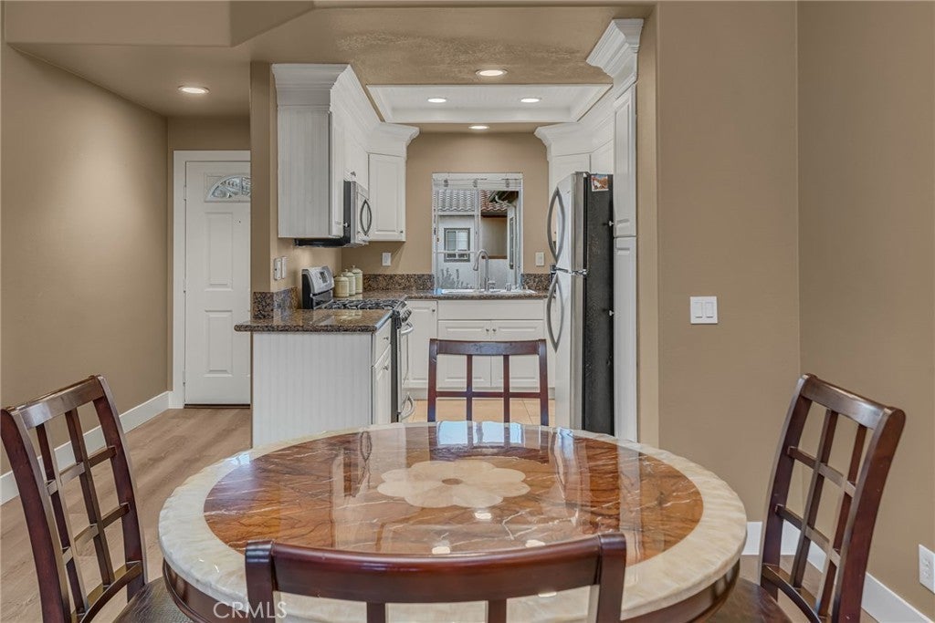 Tucked into the heart of Rancho Santa Margarita, California’s safest city, this beautifully remodeled 2-bedroom, 2-bath residence invites you into a lifestyle defined by comfort, quality, and ease. As you walk in, you’re immediately greeted by a sense of warmth and intention. The home opens gracefully, revealing newly installed luxury vinyl plank flooring, craftsman-style baseboards, and contemporary shaker doors that set a refined, modern tone throughout the 971-square-foot space. Natural light draws you into the living area, where a cozy fireplace creates the perfect backdrop for quiet evenings, while sliding doors lead to your private balcony- an ideal spot to start your morning or unwind at the end of the day. The two-bedroom, two-bath layout is both thoughtful and inviting, with a beautifully remodeled bathroom showcasing elegant, timeless finishes. Behind the scenes, major upgrades offer peace of mind, including copper and PEX plumbing completed within the last three years. In-unit laundry adds everyday ease, making this home as functional as it is beautiful. Life here extends far beyond the walls of the condo. Imagine spending sunny afternoons by the resort-style pool, enjoying a BBQ with your family while the atmosphere feels more like a vacation than a community. The expansive main pool offers a gym, sauna, and gathering spaces designed for relaxation and connection. A second pool provides a quieter retreat with stunning views overlooking Tijeras Creek Golf Club, just a short walk from your front door. Set near award-winning schools ranked among the top 250 in the nation, Rancho Santa Margarita Lake, the Beach Club Lagoon, scenic trails, shopping, dining, and easy access to the 241 freeway, this home delivers an exceptional lifestyle. With all of these amenities - it’s a place where everyday life feels elevated.
