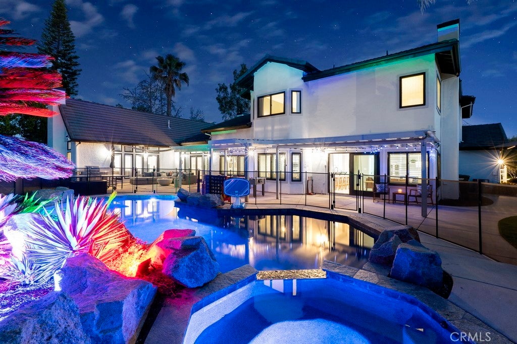 Welcome to a rare opportunity to own a 6-bedroom, 4-bath luxury estate in one of Southwest Escondido’s most desirable neighborhoods, just minutes from Lake Hodges and Rancho Santa Fe, with convenient freeway access and walking distance to Bernardo Elementary School. From the moment you arrive, the home captivates with strong curb appeal, and once inside, you are greeted by upscale finishes including soaring cathedral ceilings, rich caramel-toned flooring, and dual-pane windows with elegant shutters. The thoughtfully designed floor plan features dual primary suites, including a first-floor primary ideal for multigenerational living. The downstairs suite offers direct access to the backyard, providing exceptional flexibility for guests or extended family. All six bedrooms are generously sized, offering comfort and versatility throughout the home. In addition, a dedicated office with coffered ceilings and custom built-ins provides an ideal space for work or study. The epoxy-finished garage with built-in storage adds both function and flexibility, with the potential to be used as a den or game room. Set on a 0.5-acre flat, fully usable lot, the backyard is a true entertainer’s paradise, featuring mature landscaping and fruit trees, a Pebble Tech pool and spa, and a private putting green. Major recent upgrades totaling over $90,000 include a new 3-zone heat pump HVAC system, pool equipment, and tankless water heater. The property is truly move-in ready and also available fully furnished with upscale pieces, offering a seamless move-in experience for buyers who prefer it. Don’t miss your chance to make this remarkable house your new home!