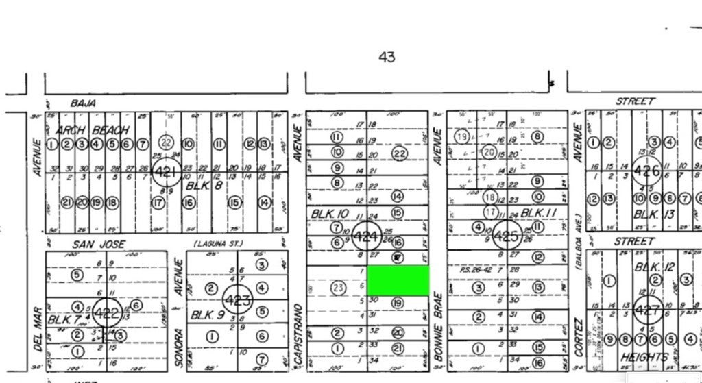 ±5,000 sq ft lot (approx. 50’ x 100’) with panoramic ocean and Catalina Island views. Located on Bonnie Brae Street, just 300 ft south of Baja Street. Water and power nearby; sewer along the northerly property line. Currently a paper street lot and not buildable per City of Laguna Beach due to lack of paved street frontage. Buyer to verify zoning, utilities, access, and future development potential. Rare chance to acquire a scenic hillside parcel in one of Laguna Beach’s most desirable neighborhoods. Priced to sell.
