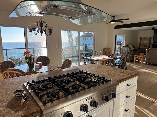 • AppliancesSixBurnerStove, Barbecue, Double Oven, Dishwasher, Disposal, Gas Oven, Gas Range, Gas Water Heater, Microwave, Refrigerator, Water To Refrigerator, Water Heater, Ice Maker