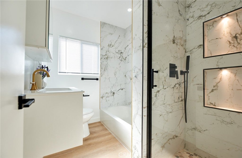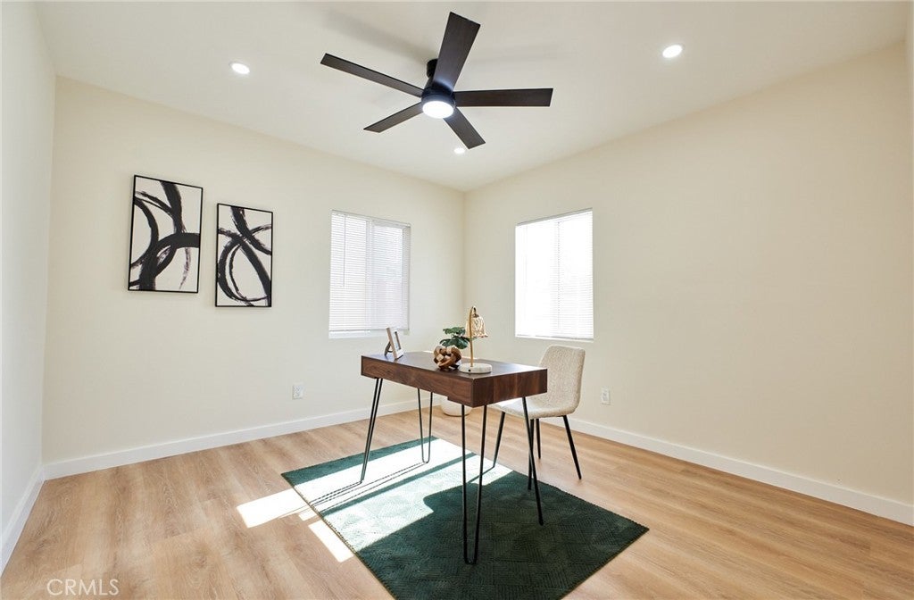 This 2-bedroom, 1-bath single-family residence blends original character with thoughtful upgrades designed for comfortable, move-in-ready living. Centrally located in the heart of Van Ness, a pride-of-ownership community, this home offers an excellent alternative to condo or apartment living. The functional floor plan is ideal for a first-time homebuyer seeking simplicity and efficiency without sacrificing style. The living and dining areas create a welcoming atmosphere, highlighted by arched ceilings, multiple windows providing abundant natural light, and newly renovated flooring. The remodeled bathroom features modern tilework, a custom glass-enclosed shower, and bespoke finishes. The fully equipped kitchen serves as the heart of the home, thoughtfully designed for everyday cooking and entertaining, with a center island creating a warm recreation space for entertaining and relaxing. Additional upgrades include a freshly painted interior and exterior, stainless steel appliances and a detached 2 car garage with new motorized doors. The property also features brand-new landscaping and a sprinkler system. The property also presents a future value-add opportunity to build an ADU for additional living space or potential rental income. Conveniently located near major freeways, public transportation, shopping, schools, Destination Crenshaw, SoFi Stadium, Intuit Dome, and LAX. Take advantage of recent mortgage rate improvements and first-time homebuyer lending programs —schedule your private tour today!!