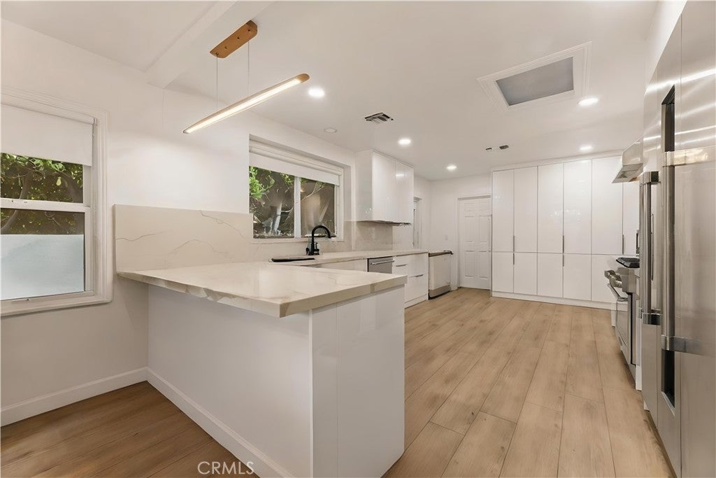 Welcome to this fully renovated single-story residence in the heart of Beverly Hills, thoughtfully redesigned to deliver modern luxury, functionality, and timeless style. Completed approximately one year ago, the renovation was fully permitted and executed with exceptional attention to detail, showcasing high-end finishes throughout. The home features en-suite bathrooms for each bedroom, providing privacy and comfort, along with a spacious bonus office that can easily function as an additional bedroom, complemented by a separate guest bathroom. The primary suite is a true retreat, offering a generously sized spa-like bathroom and a large walk-in closet. Additional highlights include a basement/utility room for extra storage, an open and light-filled living space ideal for both everyday living and entertaining, and a seamless blend of indoor comfort with outdoor appeal. Situated in one of Beverly Hills’ most desirable neighborhoods, this turnkey property presents a rare opportunity to own a move-in-ready luxury home with quality craftsmanship and thoughtful design throughout. Priced to sell, this residence offers exceptional value in a premier location.