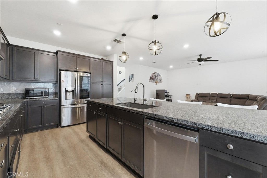 This gorgeous home is located in the brand-new Landmark community and was built in 2022 by Lennar. It offers a prime location with convenient access to freeways, Ontario Mills, Ontario International Airport, and major employers such as Amazon. Residents can enjoy walking distance to parks, supermarkets, and Starbucks, with close proximity to Costco and the brand-new 99 Ranch Market. This home features the largest floor plan in the community and sits on a desirable corner lot, offering abundant natural light throughout. Interior highlights include: 5 bedrooms and 3.5 bathrooms A grand entryway with soaring high ceilings One bedroom on the first floor with one full bathroom plus a half bath Spacious living room and formal dining room A gourmet kitchen with a large center island Dining area with direct access to a beautifully sized backyard Upstairs loft, four additional bedrooms, and a dedicated laundry room 3-car garage With a functional layout, open living spaces, and plentiful natural light, this exceptional home is a must-see. Schedule your private showing today!