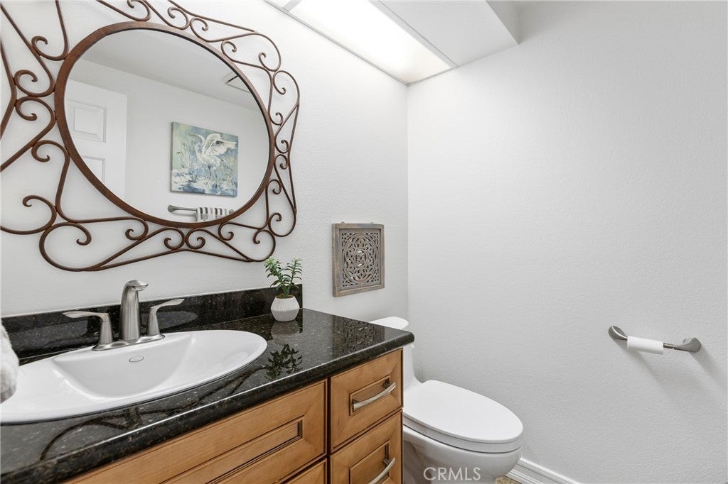 END OF CUL DE SAC, UPGRADED TOWNHOME IN HIGHLY SOUGHT AFTER BEACON HILL VISTAS. This light and bright, turnkey beach home boasts 2 bedrooms, 2 bathrooms, an open floor plan, and private patio. The remodeled kitchen has custom cabinets, stainless steel appliances, gas stove, granite counter tops and recessed lighting. It opens to the dining area with ceiling fan with sliding doors leading to the patio. The spacious living room features a fireplace, cathedral ceilings, and sliding glass doors to the patio as well. The downstairs powder room has well appointed upgrades. Beautiful tile flooring and upgraded baseboards complete the first floor. The Master bedroom is spacious with lots of natural light and sliding glass doors leading to a private balcony with neighborhood views. Ample closet space. Upgraded bathroom with granite counter tops, tile flooring and shower. A secondary bedroom completes the upstairs. Additional features include newer roll up garage door, Plantation shutters, alarm system, newer HVAC and repiped. Freshly painted white interior in 2026 and HOA is in the process of a community wide refresh of siding woodwork, paint, garage door painting, balcony/stair repair and painting, new vinyl fencing and new flat roofs. Excellent HOA amenities include 6 lighted tennis courts and 3 pools. Trails in Salt Creek corridor take you directly to world class resorts, beaches, shopping, restaurants and an ebike away to Dana Point Harbor currently undergoing an major renovation. VA and FHA approved complex!
