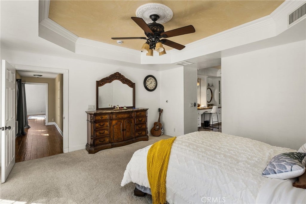 • Interior FeaturesCeiling Fan(s), Crown Molding, Granite Counters, High Ceilings, Recessed Lighting, Storage, Bedroom on Main Level, Main Level Primary, Primary Suite, Walk-In Closet(s), Beamed Ceilings, Jack and Jill Bath