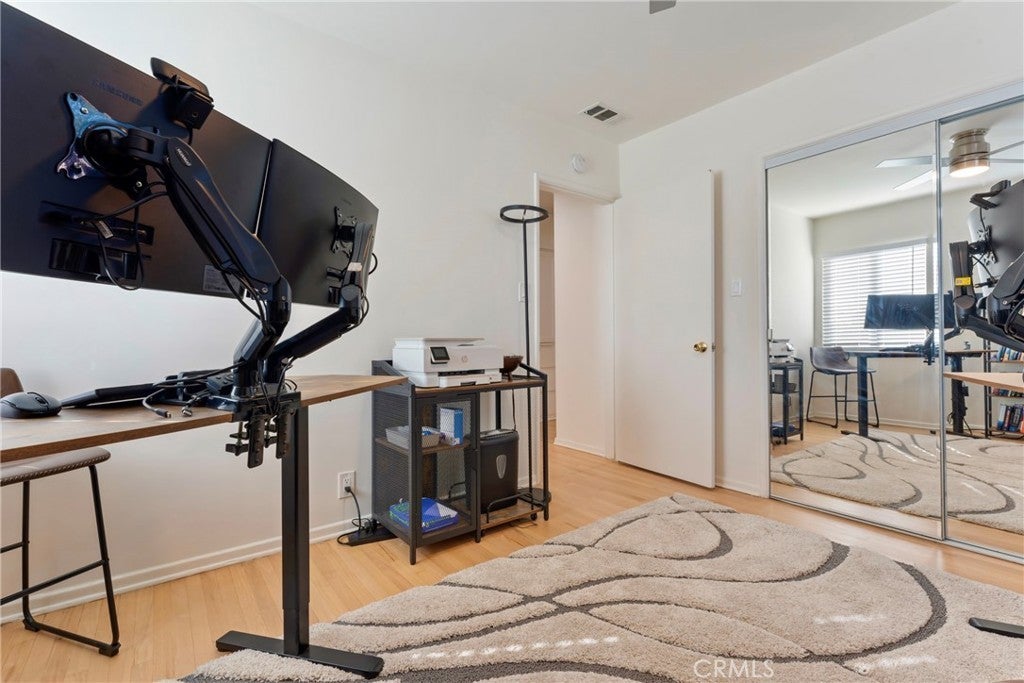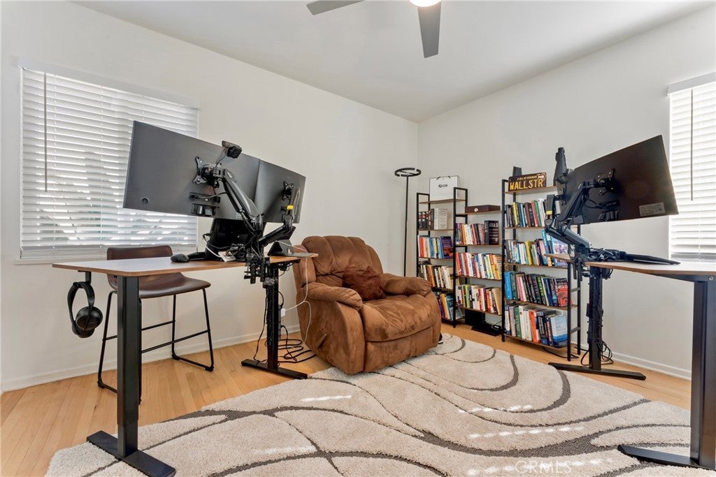 Situated in a triplex in the highly desirable neighborhood of Ladera Heights, this upper-level unit offers an abundance of natural light, wood floors, generous living spaces, and central air conditioning and heat. The unit includes a private two-car garage, providing convenient parking along with ample additional storage. Both bedrooms are spacious and feature new ceiling fans. The kitchen is equipped with brand-new appliances, and a separate laundry room includes a new washer and dryer. Outside, residents enjoy access to a fenced yard area shared among the three units in the triplex. Located just a short walk up the beautiful, tree-lined La Tijera Boulevard is a shopping center with restaurants and a 24 Hour Fitness.