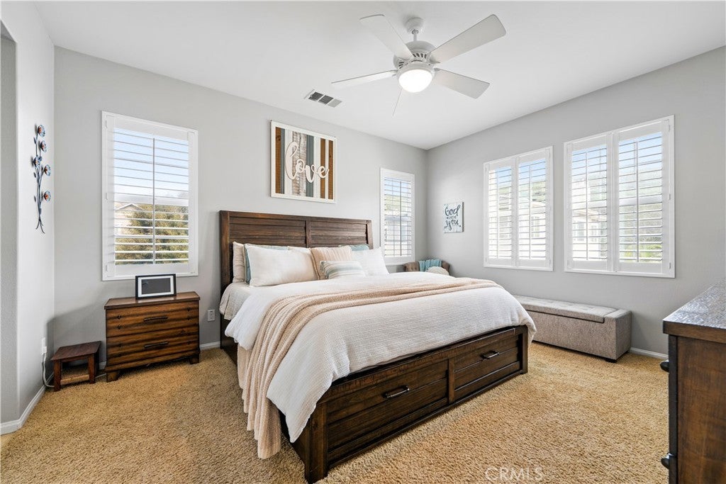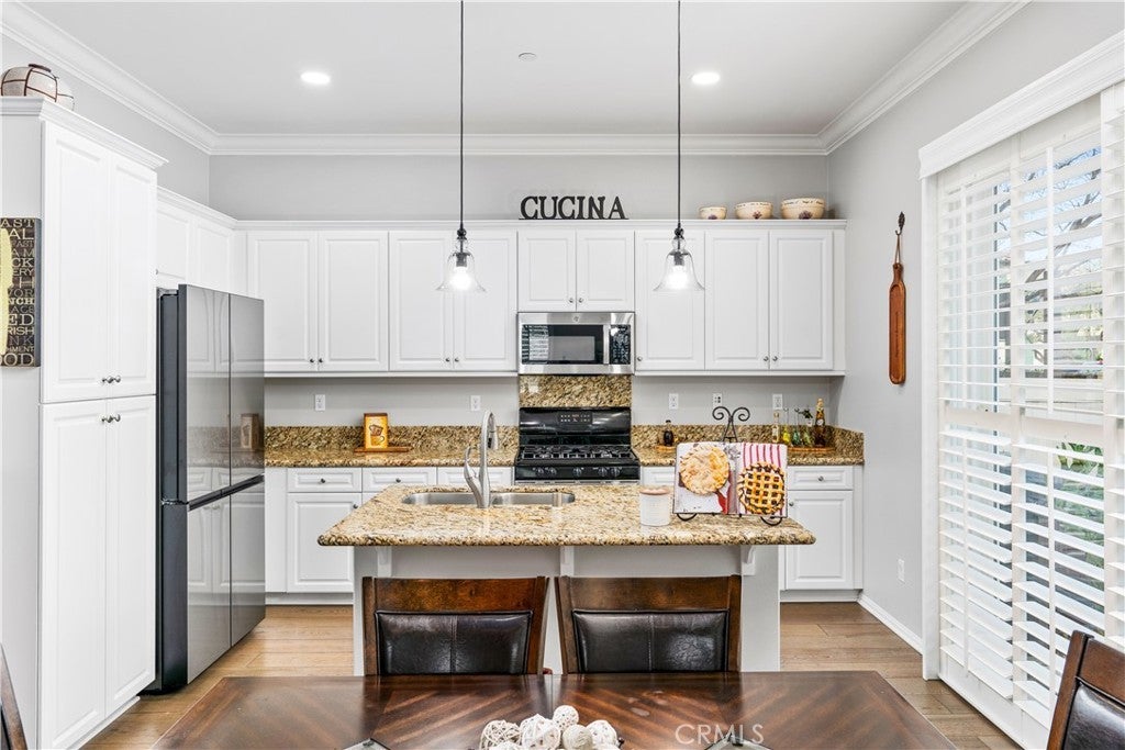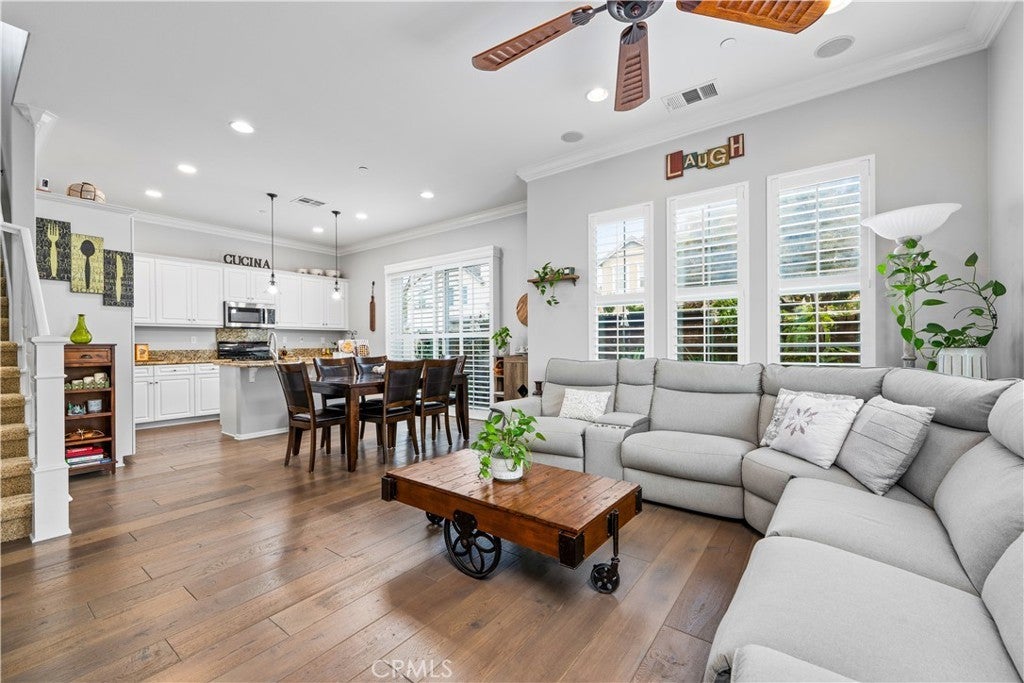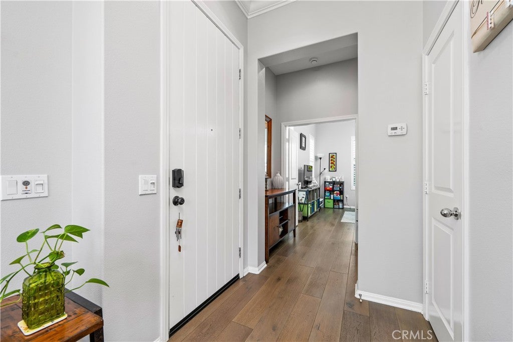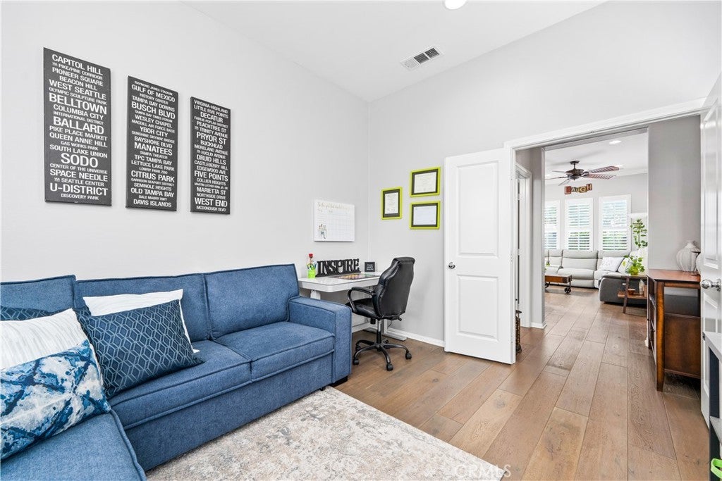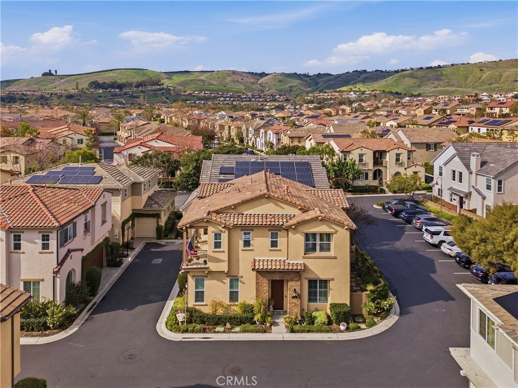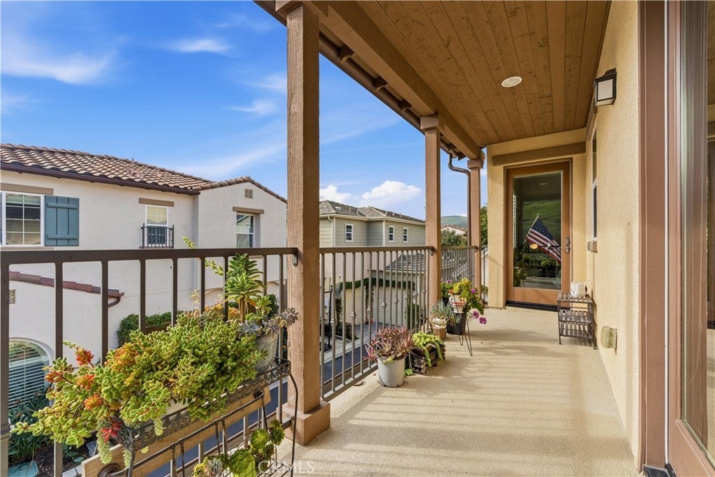 Welcome to this fantastically well designed three bedroom (plus a den!!) three-and-a-half-bath, single-family detached end-unit home located in the desirable Sendero community of Rancho Mission Viejo. The kitchen is appointed with granite countertops and opens to the dining area and living room which are highlighted by beautiful wood laminate flooring throughout the downstairs. The main level includes a versatile den and a convenient half bath, ideal for a home office, guest space, or flex room. Plantation shutters throughout the home offer another touch of class, even on the slider that leads to the outdoor patio area! Enjoy a low-maintenance patio ideal for outdoor relaxation. Each bedroom features ceiling fans and its own private ensuite bathroom, offering comfort and convenience throughout, while the two secondary bedrooms enjoy access to a shared outdoor balcony. Also upstairs is a dedicated laundry room with multiple storage cabinets and a utility sink that adds everyday functionality. A portion of the two-car garage has been thoughtfully converted into an office space, perfect for today’s work-from-home needs, while still allowing for parking and storage. The end-unit location provides added privacy and is right down the street from the Sendero Farm. Residents of Sendero enjoy an exceptional array of amenities, including a clubhouse, resort-style outdoor pools, fitness centers, parks, hiking trails, and a wonderful calendar of neighborhood events.