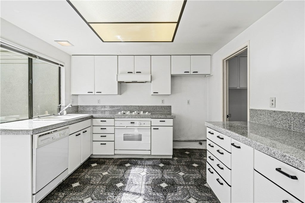 SINGLE-STORY GROUND-LEVEL TOWNHOUSE, NO ONE ABOVE OR BELOW, STEPS FROM COMMUNITY POOL AND SPA! Fixer Upper with 2 Bedrooms and 1.5 bathrooms. Enter through the front gate and block-walled patio into an open floor plan with cathedral ceilings in Living and Dining Rooms. In the back of the home is a spacious and private Primary Bedroom and ensuite bathroom, including vanity area and shower privacy door, with glass slider to an atrium open to the sky. The Kitchen, with doorway to the Dining Room, has windows and a door to the atrium, where you can relax in the open air, dine and barbeque. The front bedroom, which can be used as an office, with a powder room and closet has windows to the front and side letting in lots of natural light and views of trees and plants. Some homeowners of this same model have reconfigured the powder room to add a shower, but HOA approval and Irvine city permit would be required. A large detached 2-car garage with storage is right around the corner. Acclaimed Irvine School District, including University High. Next to San Joaquin Golf Course, Racquet Club of Irvine and Rancho Senior Center. Conveniently located near UCI, William Mason Park, John Wayne Airport, Newport Beach, Fashion Island and walking distance to shops and entertainment. Water, trash, and exterior maintenance included in HOA dues. A great opportunity to remodel this home the way you want!